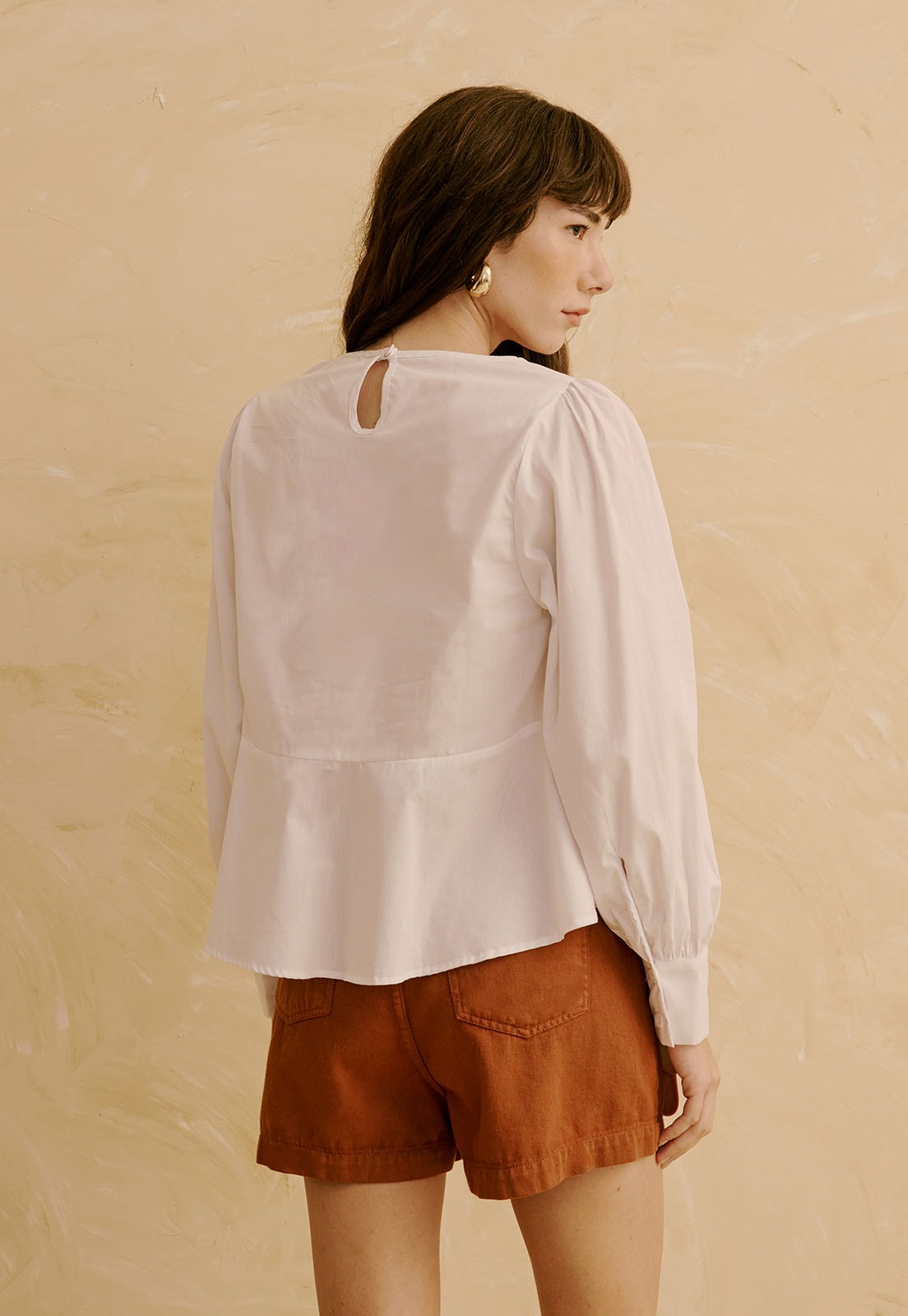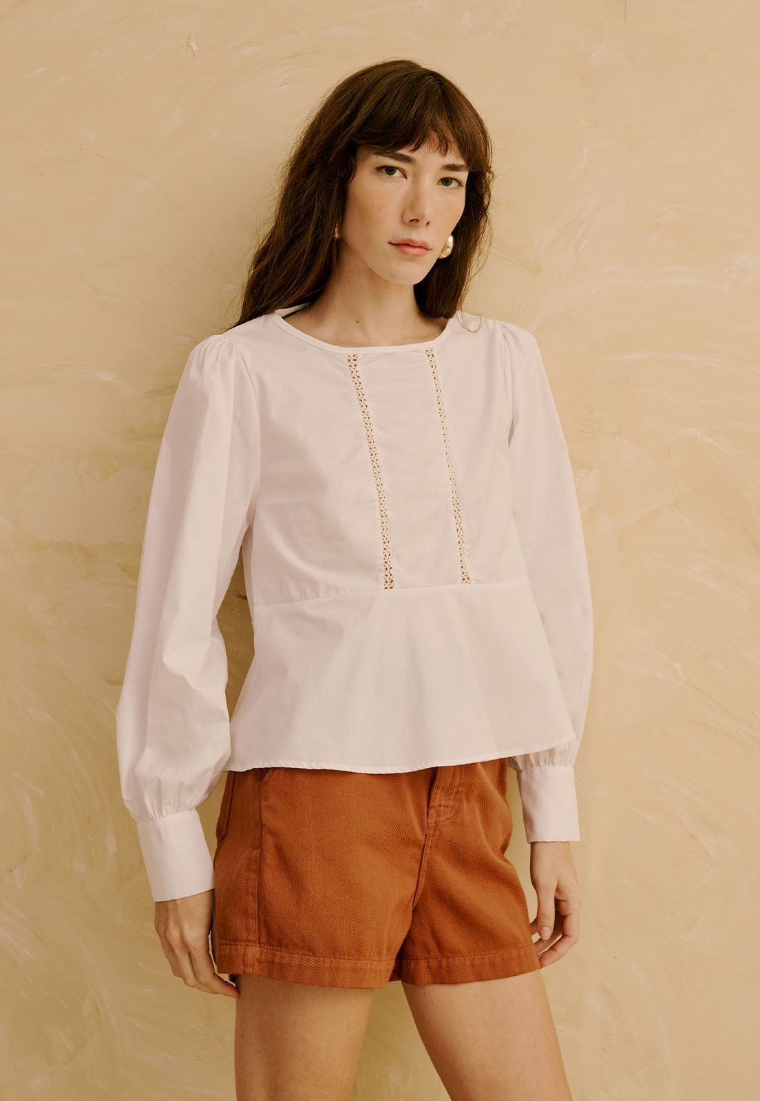 Confeccionada em 100% algodão, sem elasticidade, a bata oferece frescor e bem-estar mesmo em uso prolongado. Versátil, transita bem entre ocasiões casuais, trabalho ou momentos de lazer, sempre com estilo refinado. Combine com shorts de alfaiataria, calças fluidas ou acessórios delicados para compor produções que equilibram conforto e sofisticação.