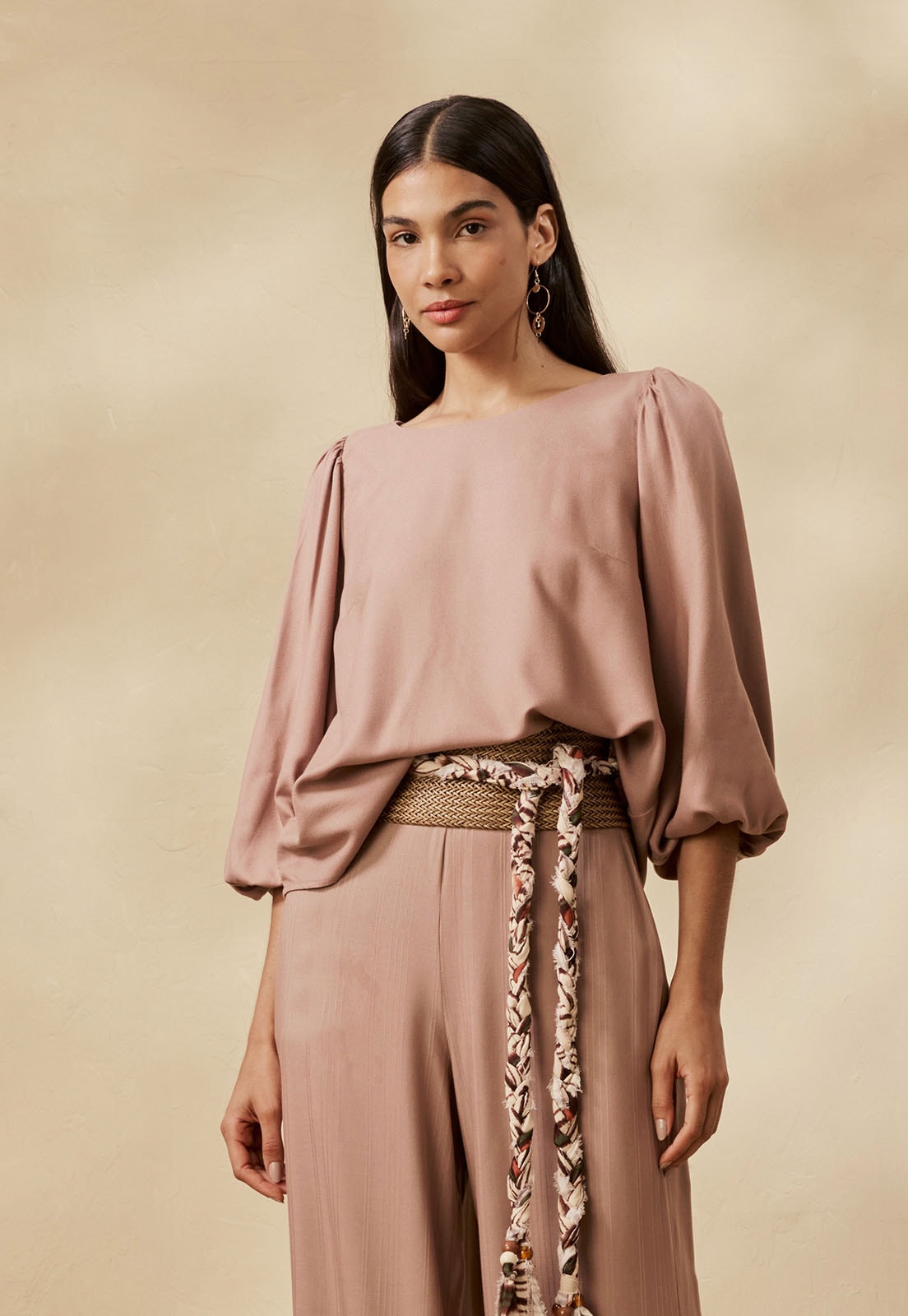 A Bata com Manga Bufante da CaCay tem modelagem solta,, elegante e com caimento suave no busto que cria equilíbrio entre conforto e definição. A forma é grande, então se estiver em dúvida entre dois tamanhos, opte pelo menor e consulte a tabela de medidas para precisão. Na foto, a modelo tem 1,75m, veste manequim 36 e está usando o tamanho P.