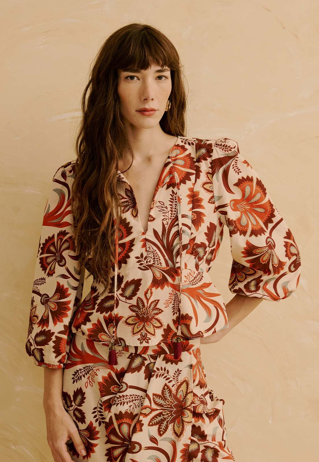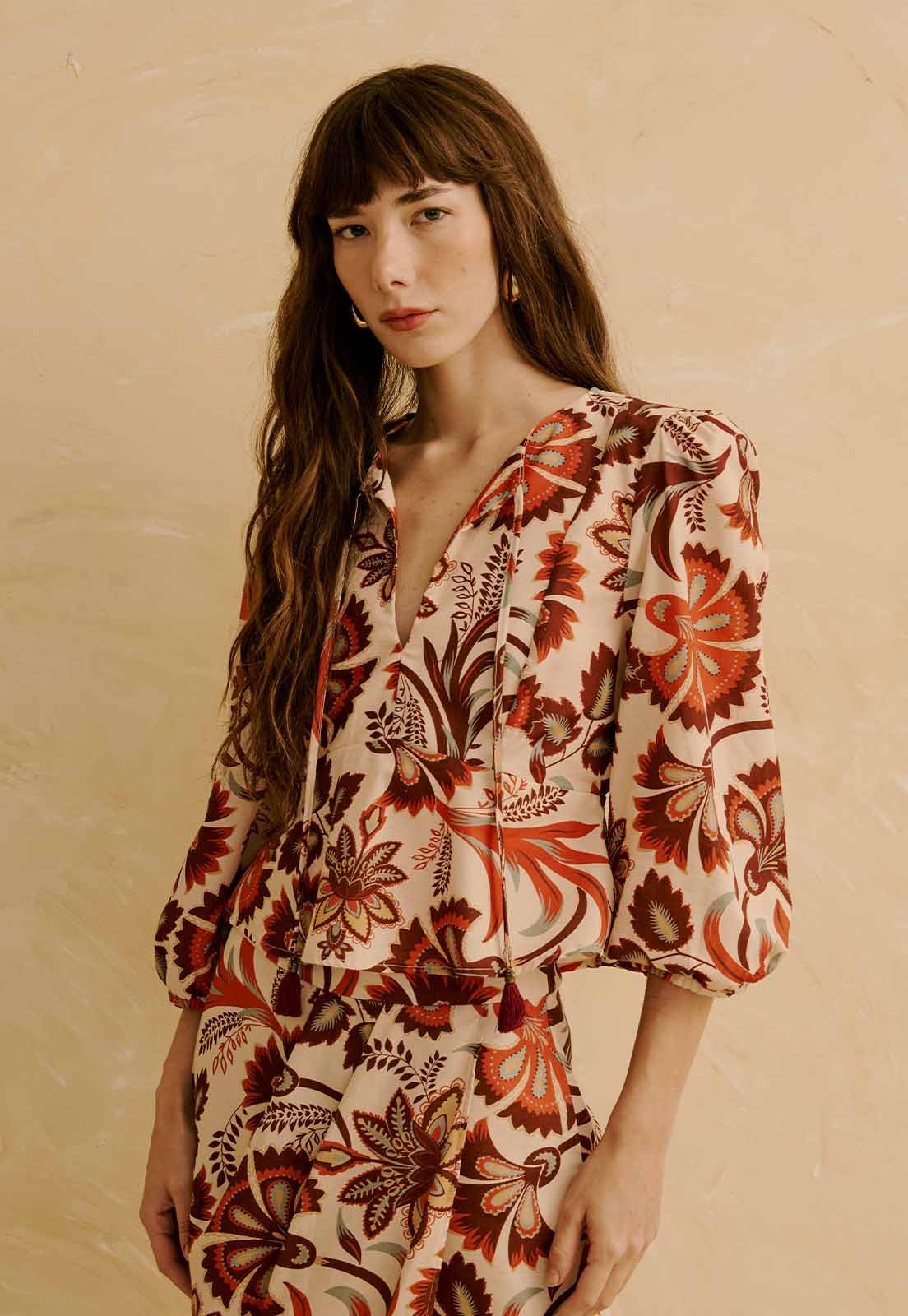A Bata com Ponteira Tassel Estampada Flor de Mashua da CaCay apresenta modelagem solta e elegante, com caimento confortável no busto e leve ajuste na cintura, proporcionando fluidez. A forma é grande, então se estiver em dúvida entre dois tamanhos, recomendamos escolher o menor e consultar a tabela de medidas para precisão. A modelo da foto tem 1,75m, veste manequim 36 e está usando o tamanho P.