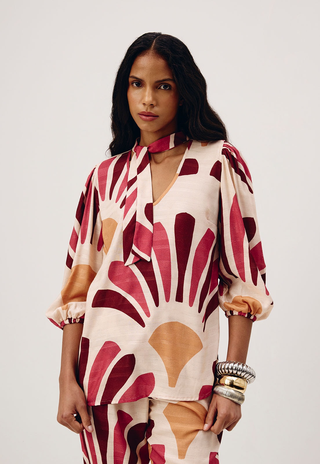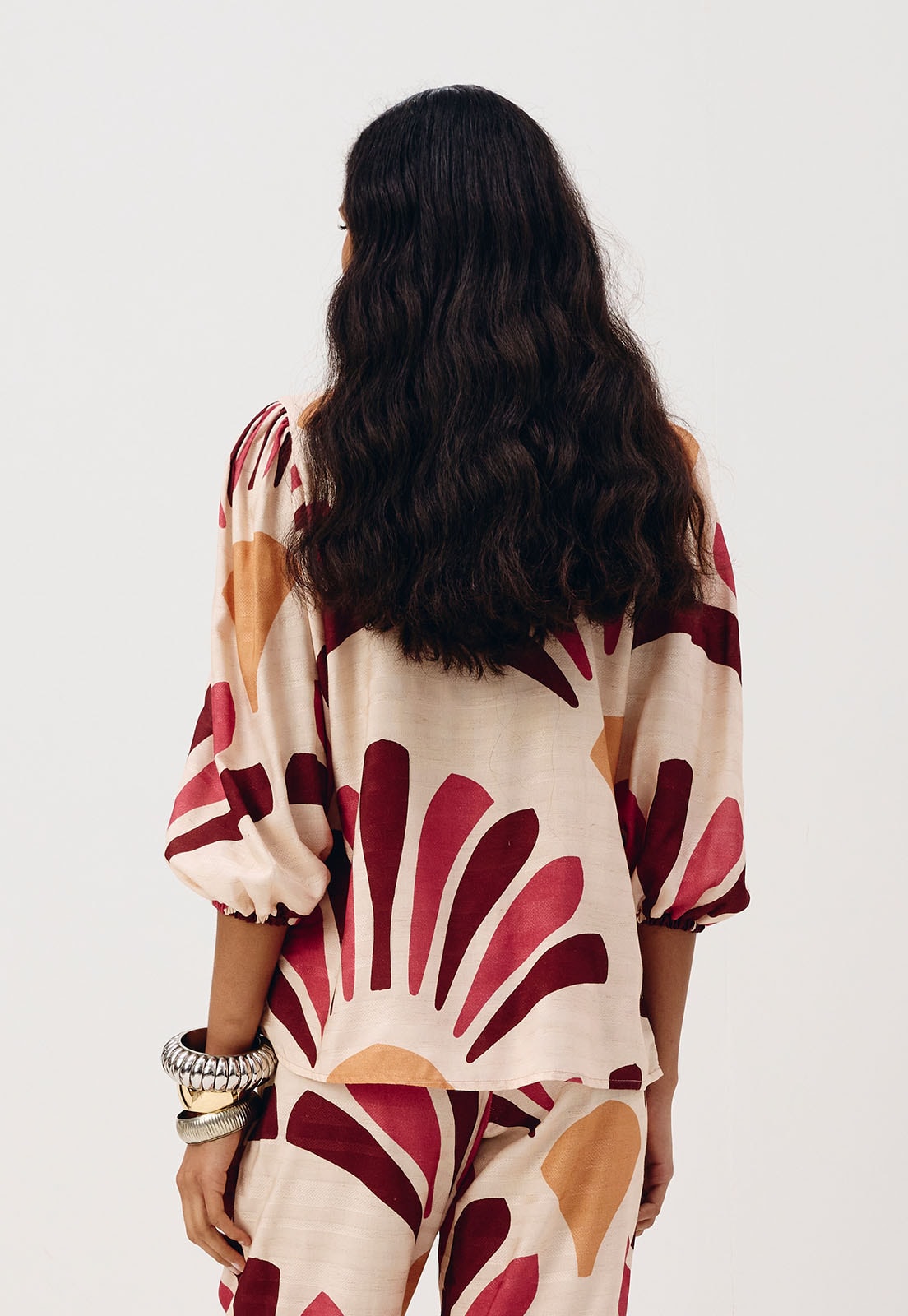 Versátil e atemporal, essa bata combina perfeitamente com calças de linho, shorts de cintura alta ou saias fluidas. Para completar o look, aposte em acessórios naturais como brincos de madeira, pulseiras artesanais e sandálias rasteiras.