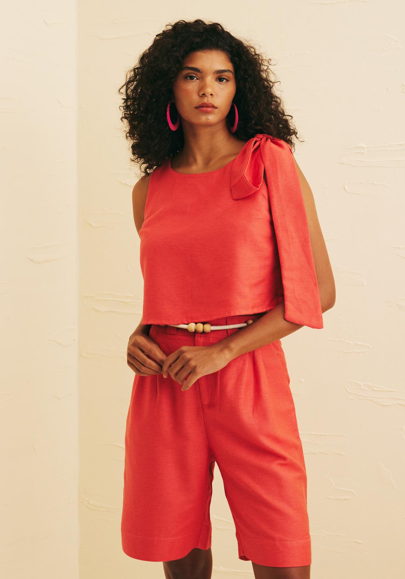 Versátil e elegante, a Bermuda éuma peça que confere praticidade ao seu dia a dia. Apresenta bainha inglesa quetraz um toque sofisticado, cós com passadores e bolsos que conferemfuncionalidade. Sua modelagem reta proporciona conforto e liberdade de movimentoe seu fechamento é em zíper e botão na parte frontal. É confeccionada em tecidode composição 50% Algodão 29% Viscose 15% Modal 6% Linho.
