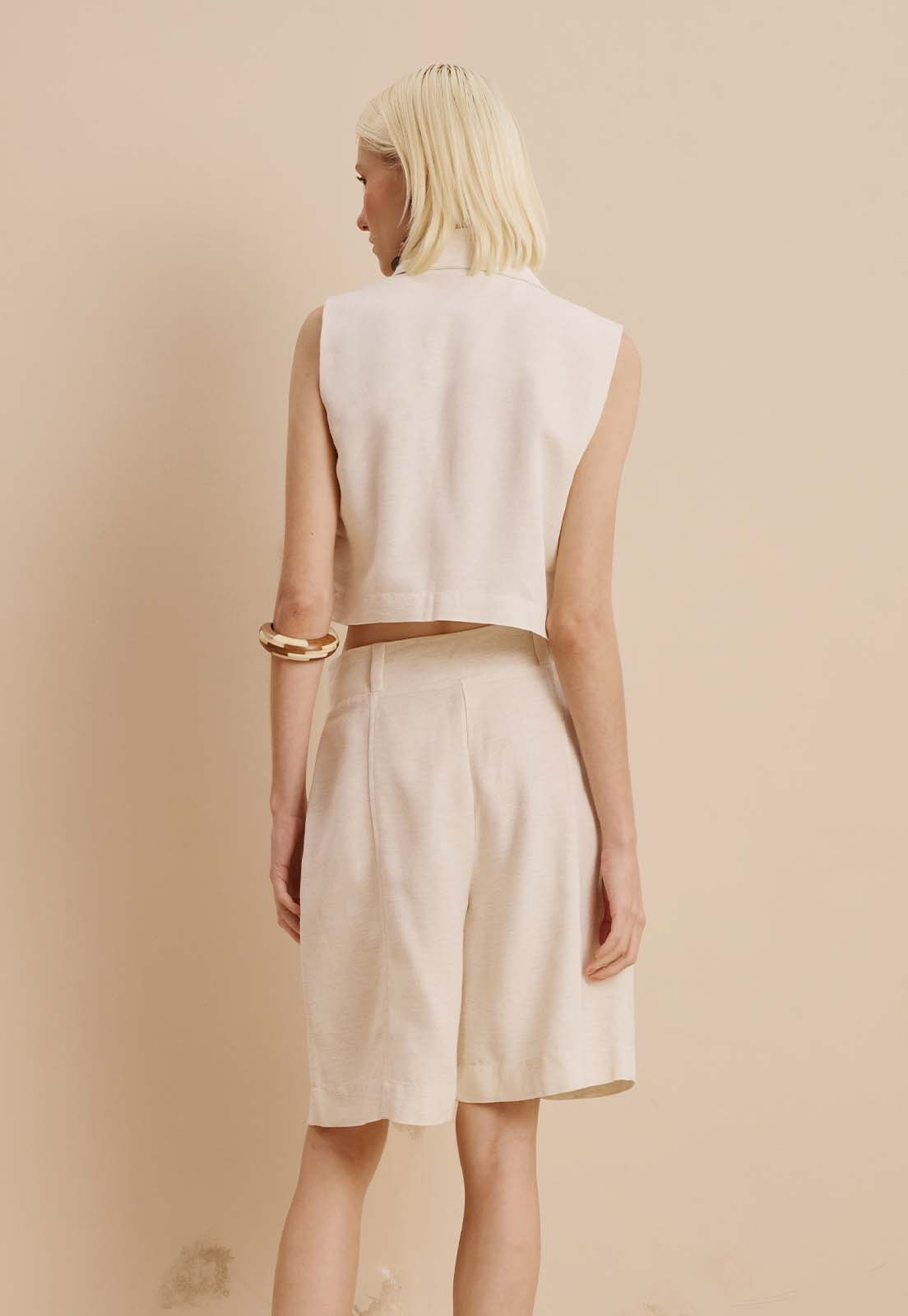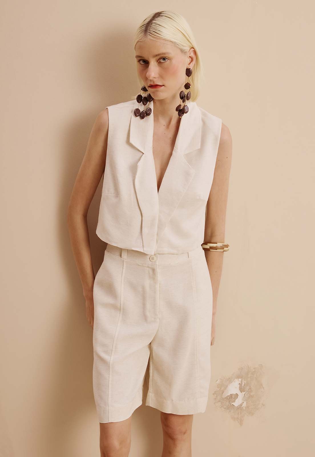 Confeccionada em uma mistura nobre de fibras naturais algodão, viscose, modal e linho essa bermuda traz um design minimalista com detalhes que elevam o visual: o cós largo proporciona ajuste seguro e moderno, enquanto a modelagem reta e os recortes estratégicos criam um efeito alongador. Versátil para ocasiões casuais ou produções mais refinadas, combina perfeitamente com regatas estruturadas, camisas de linho ou blazers cropped. Finalize com sandálias de tiras, brincos orgânicos ou pulseiras robustas para um toque de estilo natural.