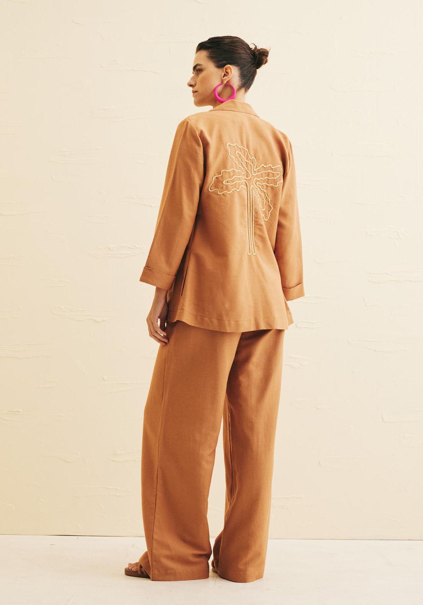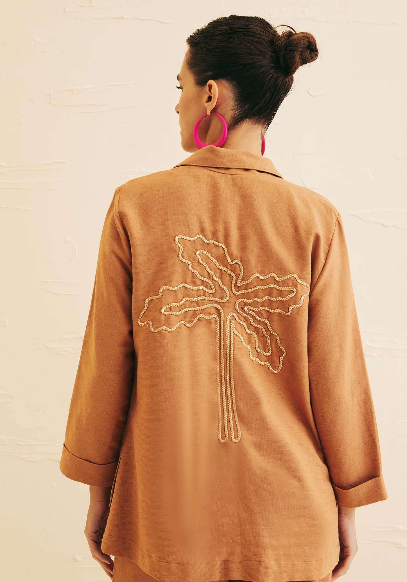 Este blazer de modelagem ampla é idealpara adicionar um toque de elegância ao seu guarda-roupa. Confeccionado emtecido de composição 42% algodão 38% viscose 14% modal e 6% linho, este modeloé clássico e se destaca pelo exuberante coqueiro bordado nas costas que traz umtoque único e exclusivo para a peça.