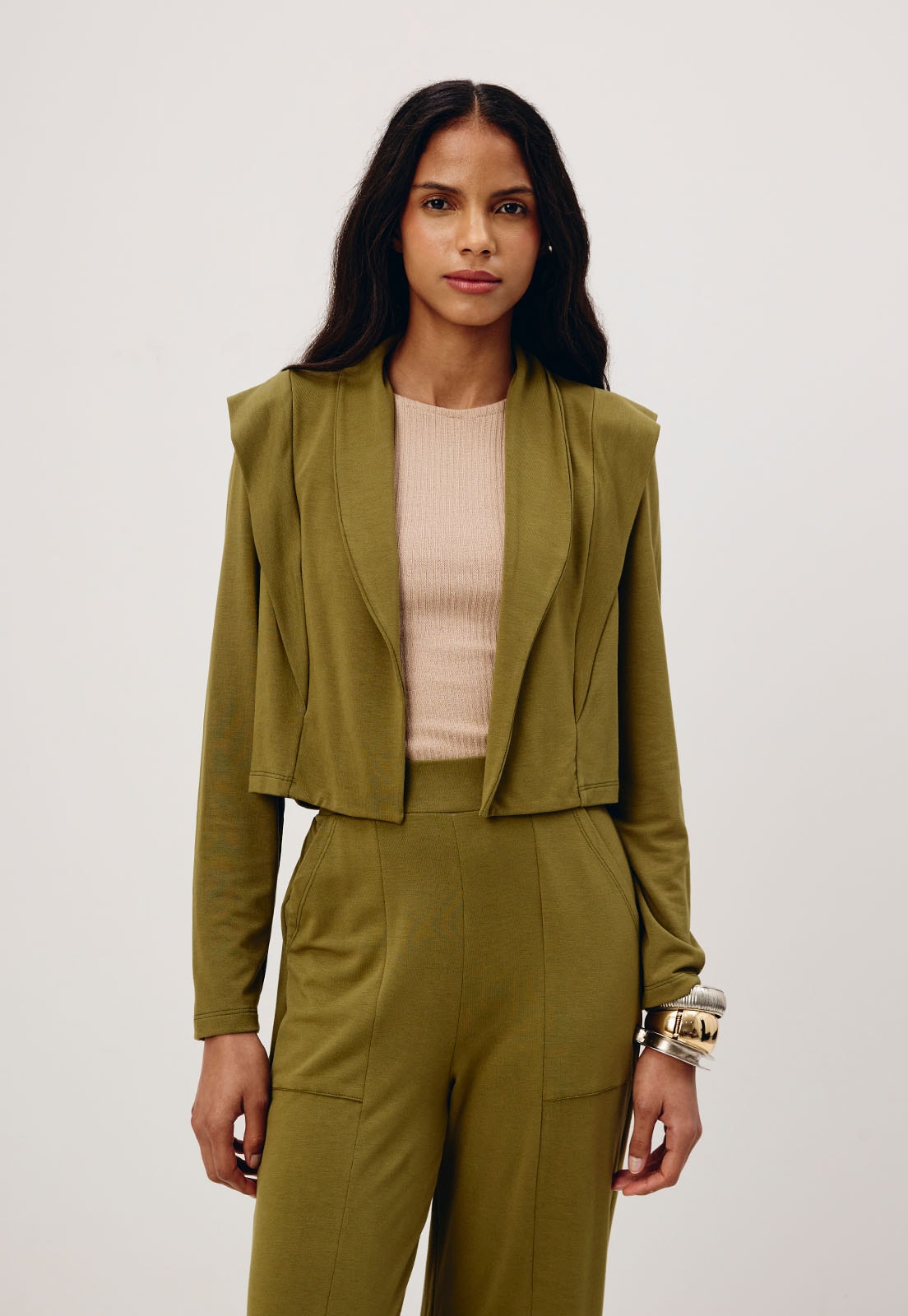 O blazer liso é confeccionado em malha 94% viscose 6% elastano. É um modelo muscletee moderno e versátil, que pode ser usado como terceira peça em diversas composições.