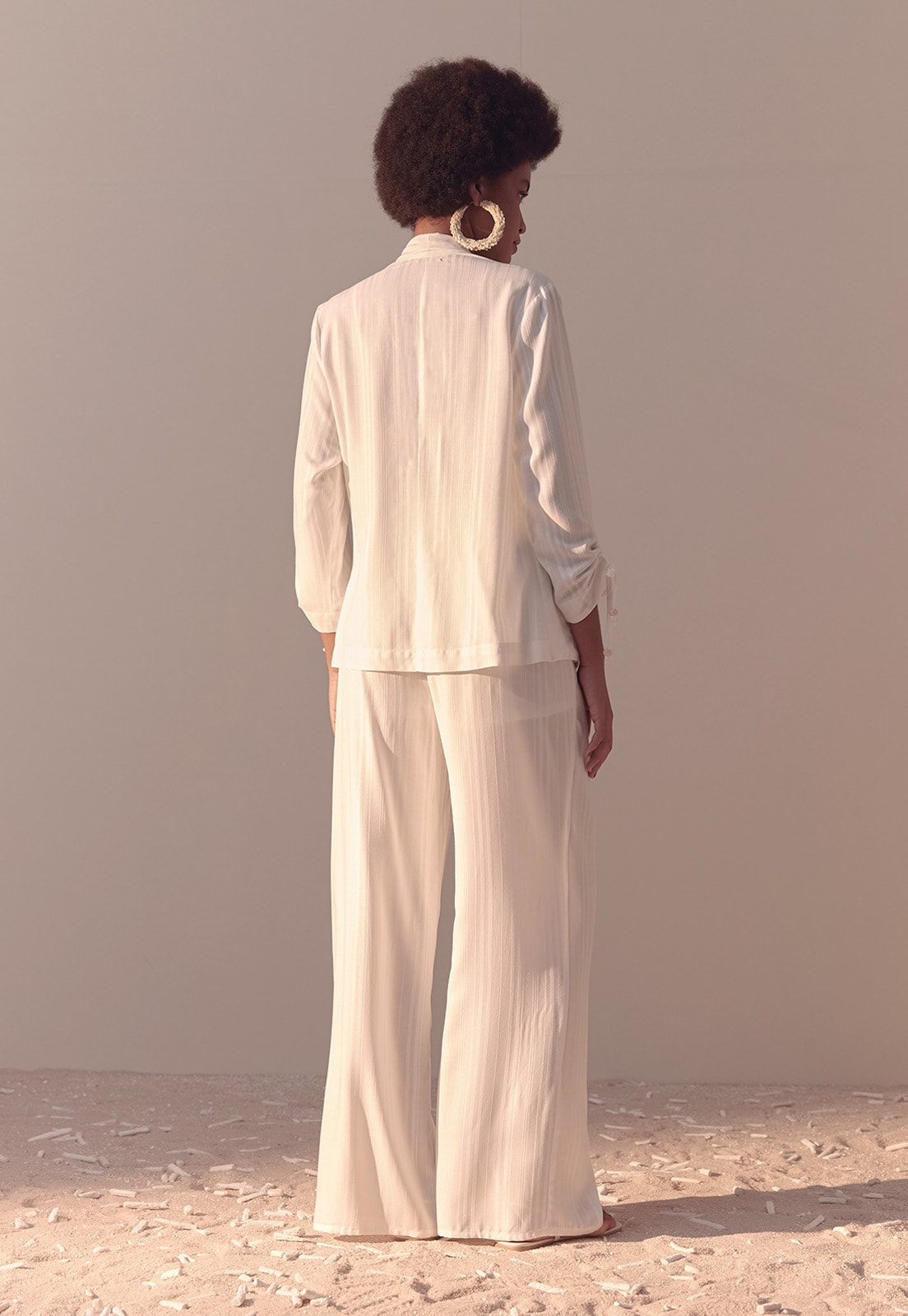 Este blazer de gola xale é a escolha perfeita para um visual elegante e sofisticado. Com mangas 7/8 levemente franzidas no punho e acabamento de amarração, ele ganha um toque único. Os bolsos frontais são funcionais, ideais para um toque casual sem perder o charme. A composição 100% viscose garante leveza e conforto, tornando-o indispensável para os dias de clima ameno.