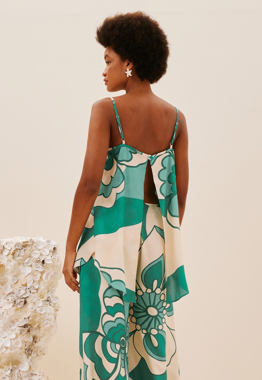 A blusa estampada Pop Flower é confeccionada em tecido 100% viscose.Com modelagem alongada e alça fina, o modelo possui as costas abertas e a barra curvada.