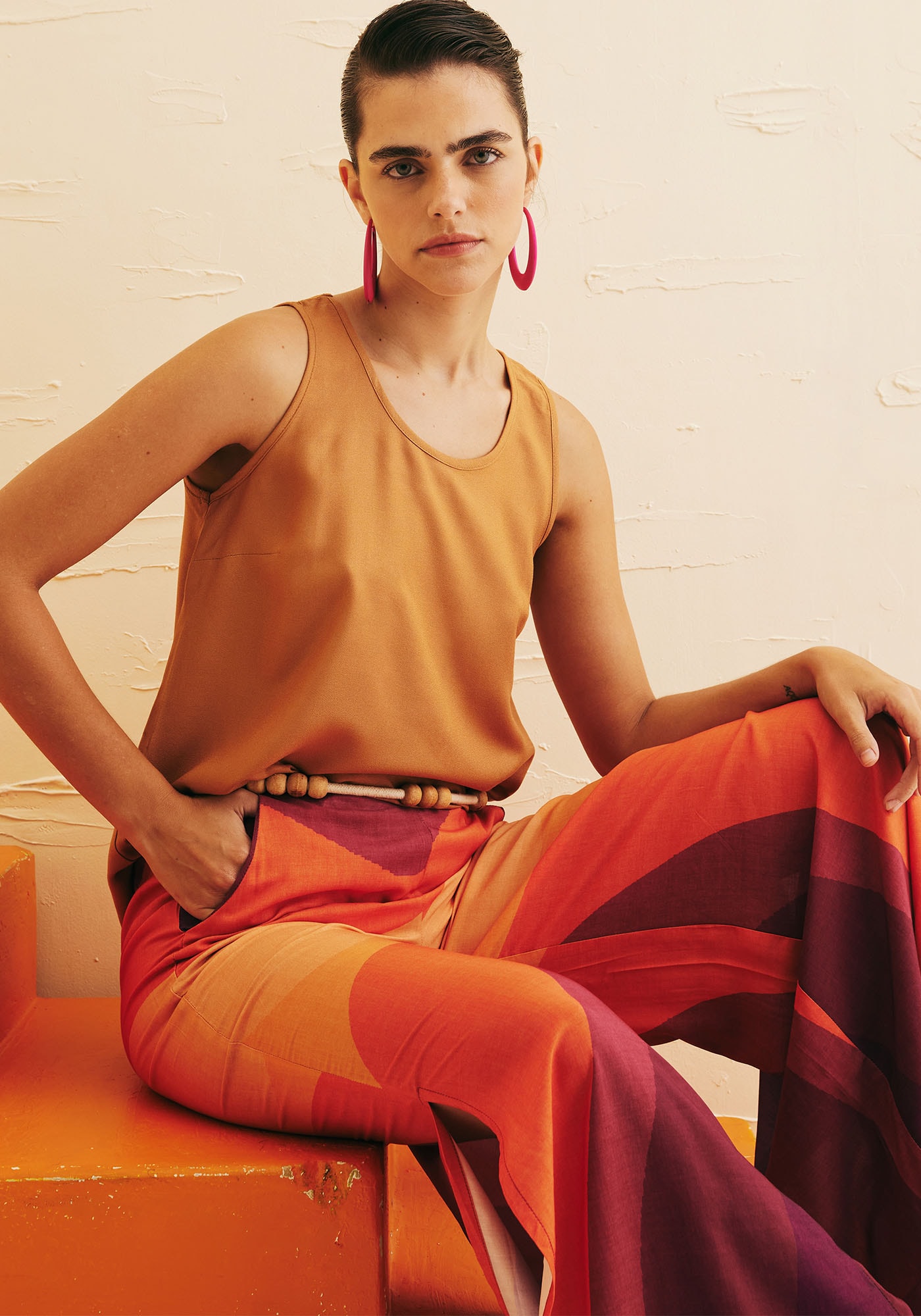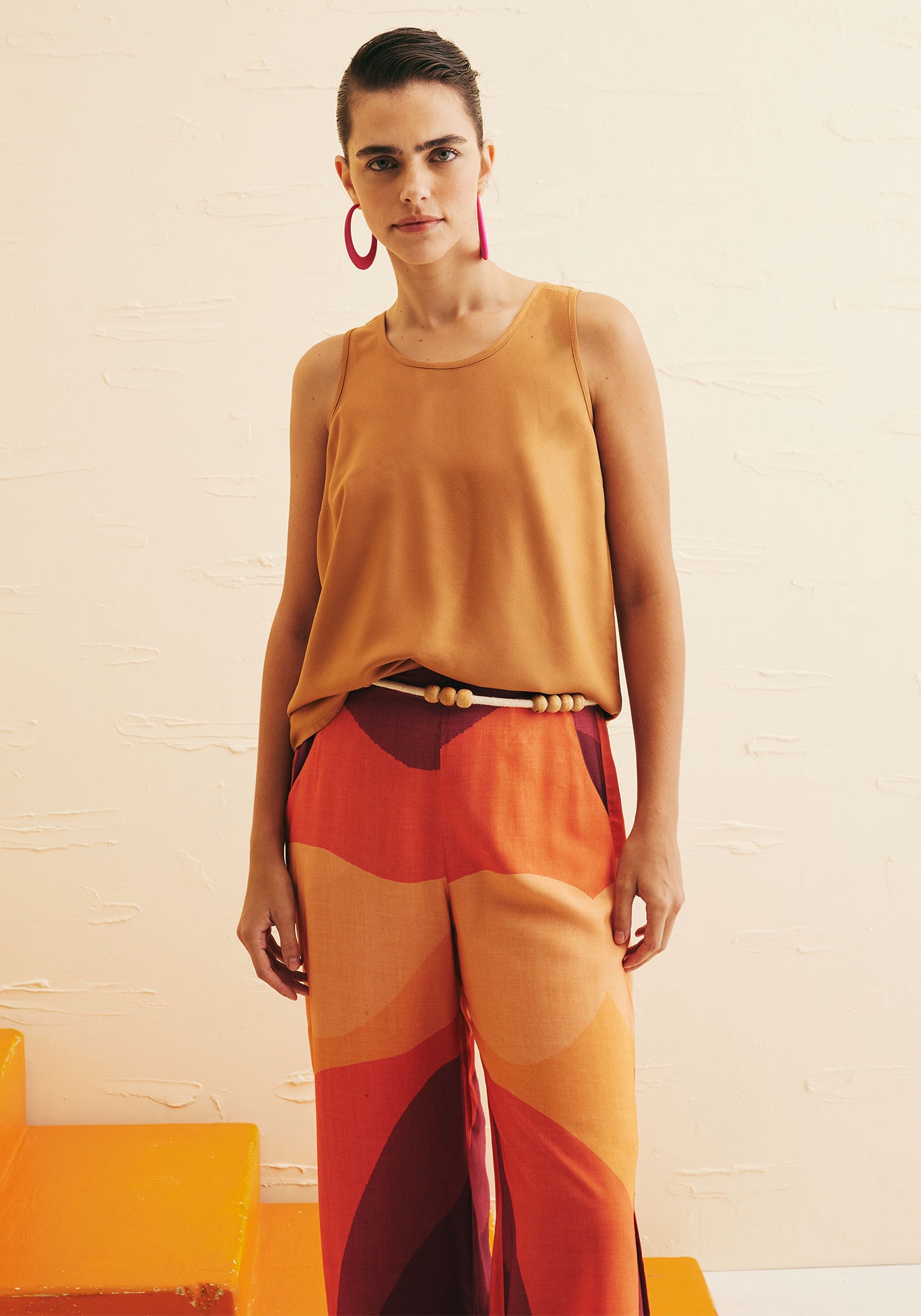 Confeccionada em tecido 100% viscose, a blusa lisa é um modeloversátil. O modelo possui alça larga, proporcionando mais segurança e decoteredondo, podendo ser usada como peça coringa para completar diferentes looks.