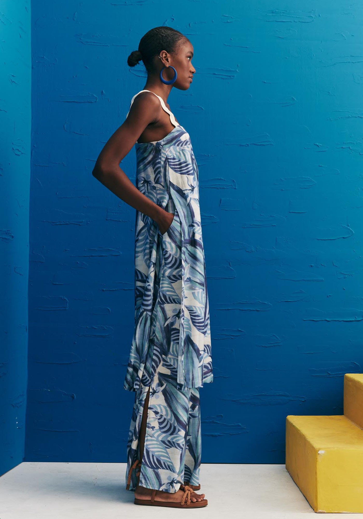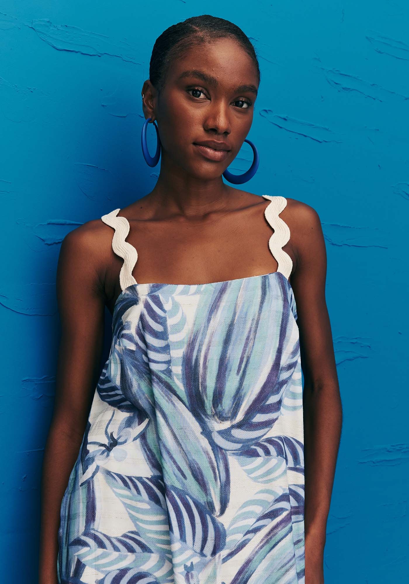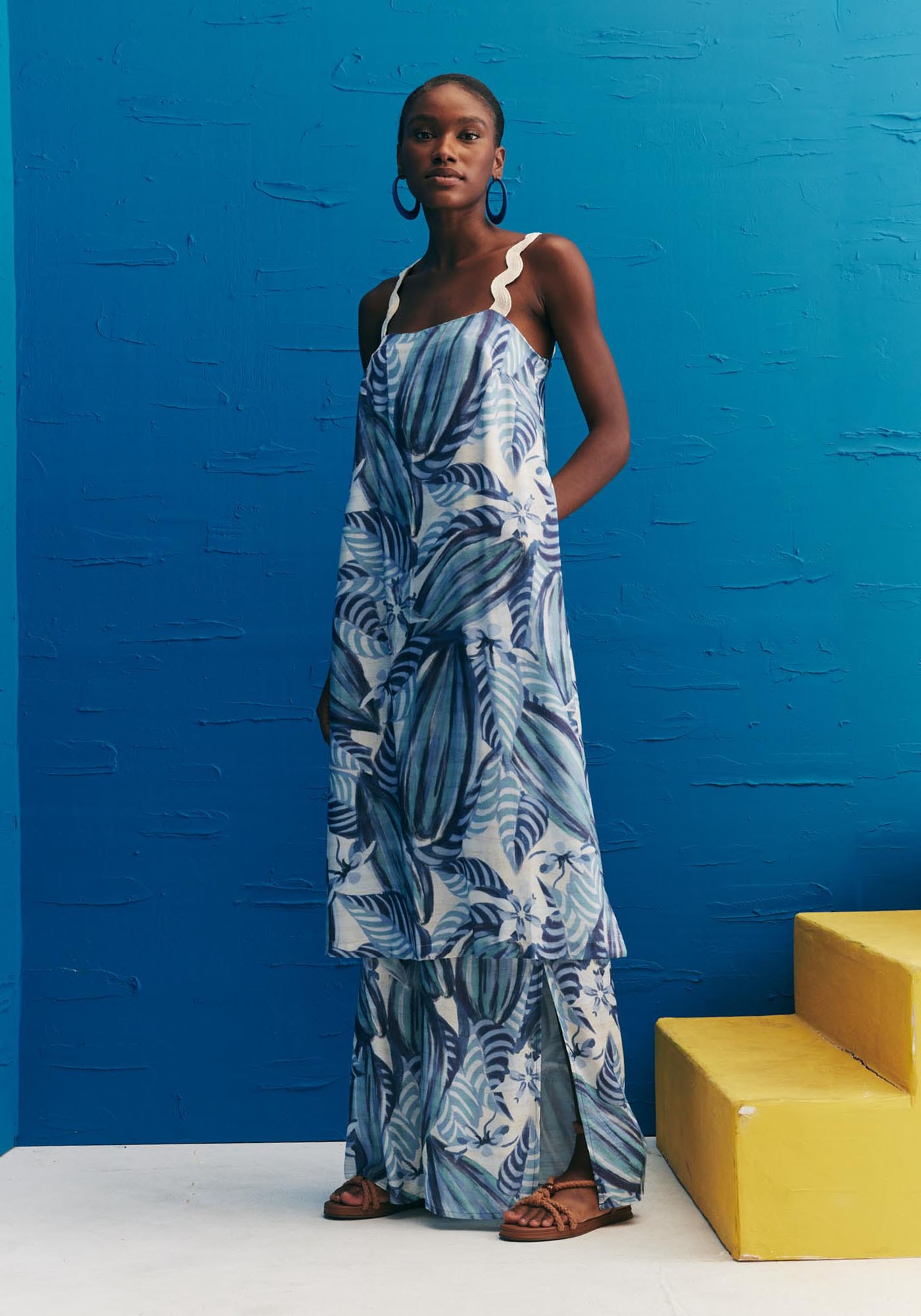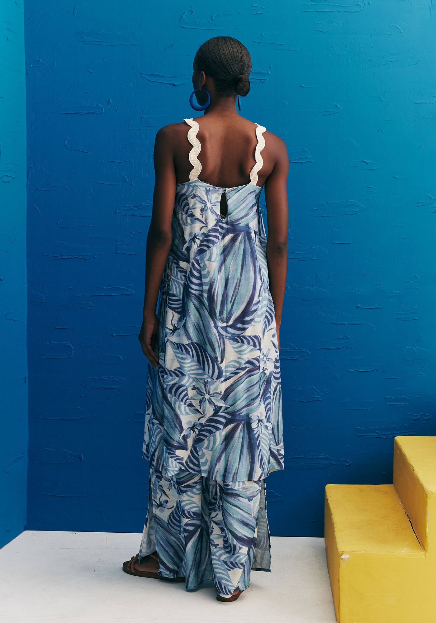 A blusa alongada é uma peça moderna e estilosa.Confeccionada em tecido 97% viscose e 3% linho, possui decote reto e a alça com o detalhecharmoso da sianinha ondulada branca. Outro diferencial é o comprimento alongadoe as fendas laterais, que dão destaque para a peça que completa o look.