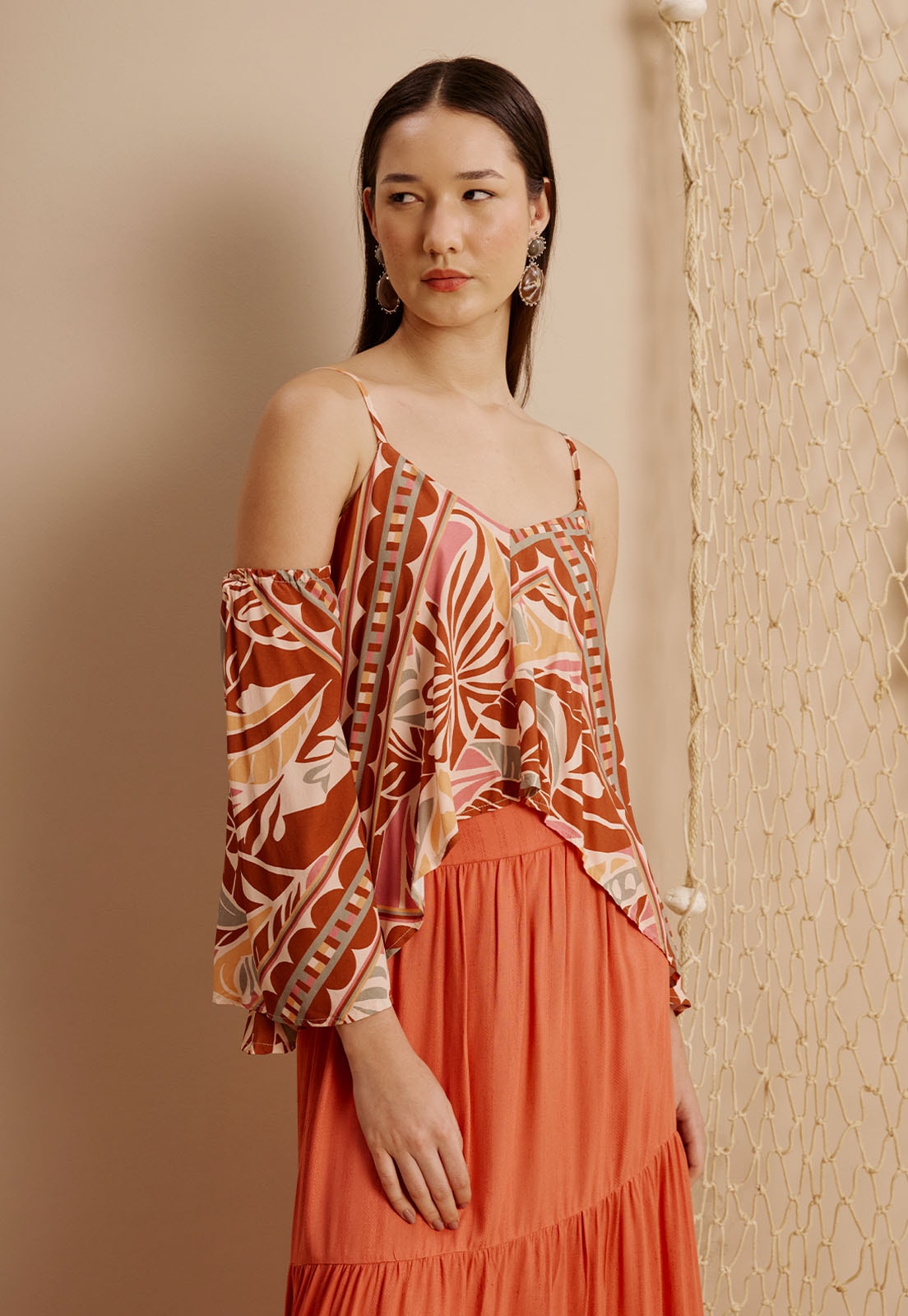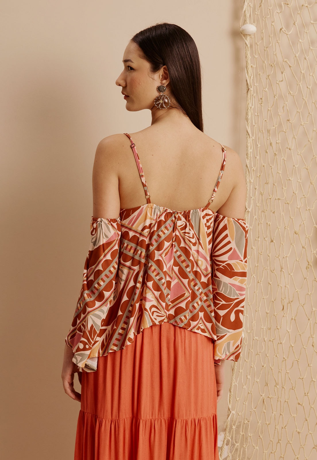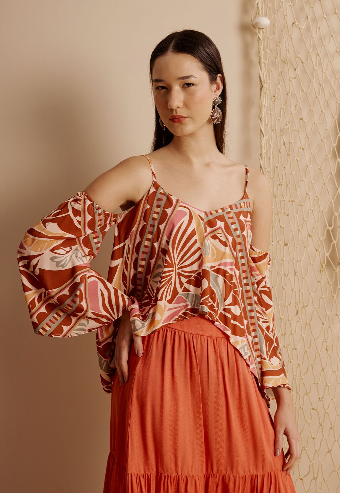 Com modelagem ampla e tecido 100% viscose, essa blusa proporciona um caimento fluido e confortável, ideal para dias quentes ou ocasiões que pedem liberdade de movimento com estilo. O design com ombro vazado e alças finas valoriza o colo de forma elegante, enquanto a estampa inspirada na azulejaria artística adiciona um toque contemporâneo e artesanal à composição. Versátil e atemporal, combina perfeitamente com saias fluidas, calças de alfaiataria ou jeans de cintura alta, além de acessórios como brincos marcantes ou bolsas estruturadas. A CaCay traduz nessa peça o equilíbrio entre moda autoral e funcionalidade.