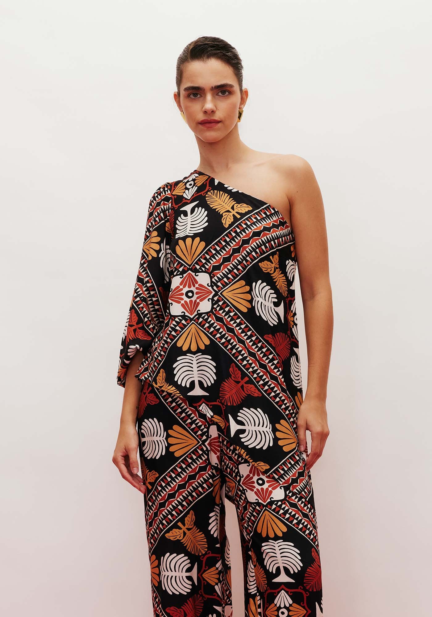 Confeccionada em tecido 100% algodão, a blusaassimétrica possui um desenho arrojado. Modelo de um ombro só, a peça possuimanga bufante com elástico, que possibilita o ajuste na altura desejada. Além disso,contém um recorte assimétrico bonito e moderno.