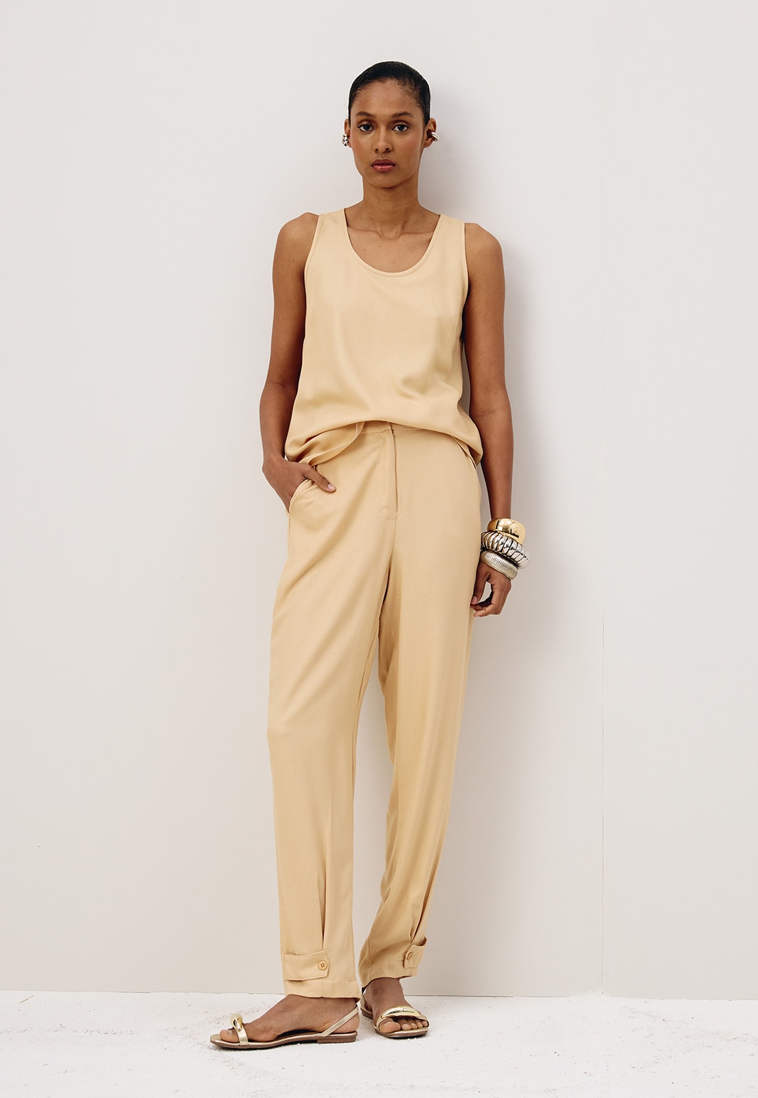 Com visual limpo e atemporal, essa blusa regata tem alças largas e decote em U que valorizam o colo com discrição. A modelagem soltinha acompanha o corpo sem marcar, oferecendo conforto e versatilidade para diferentes composições. Feita em 100% Viscose, tem caimento fluido e acabamento suave.