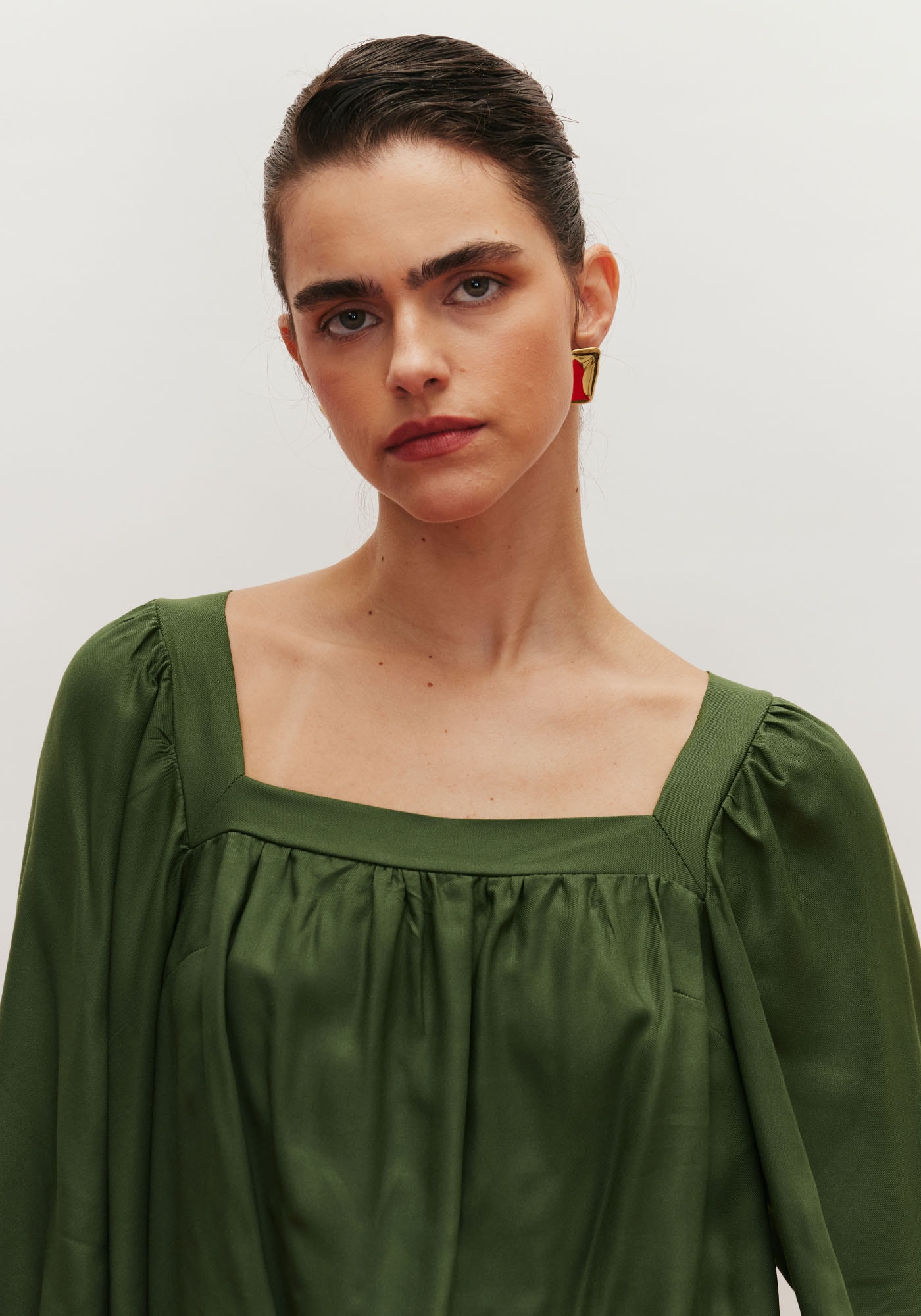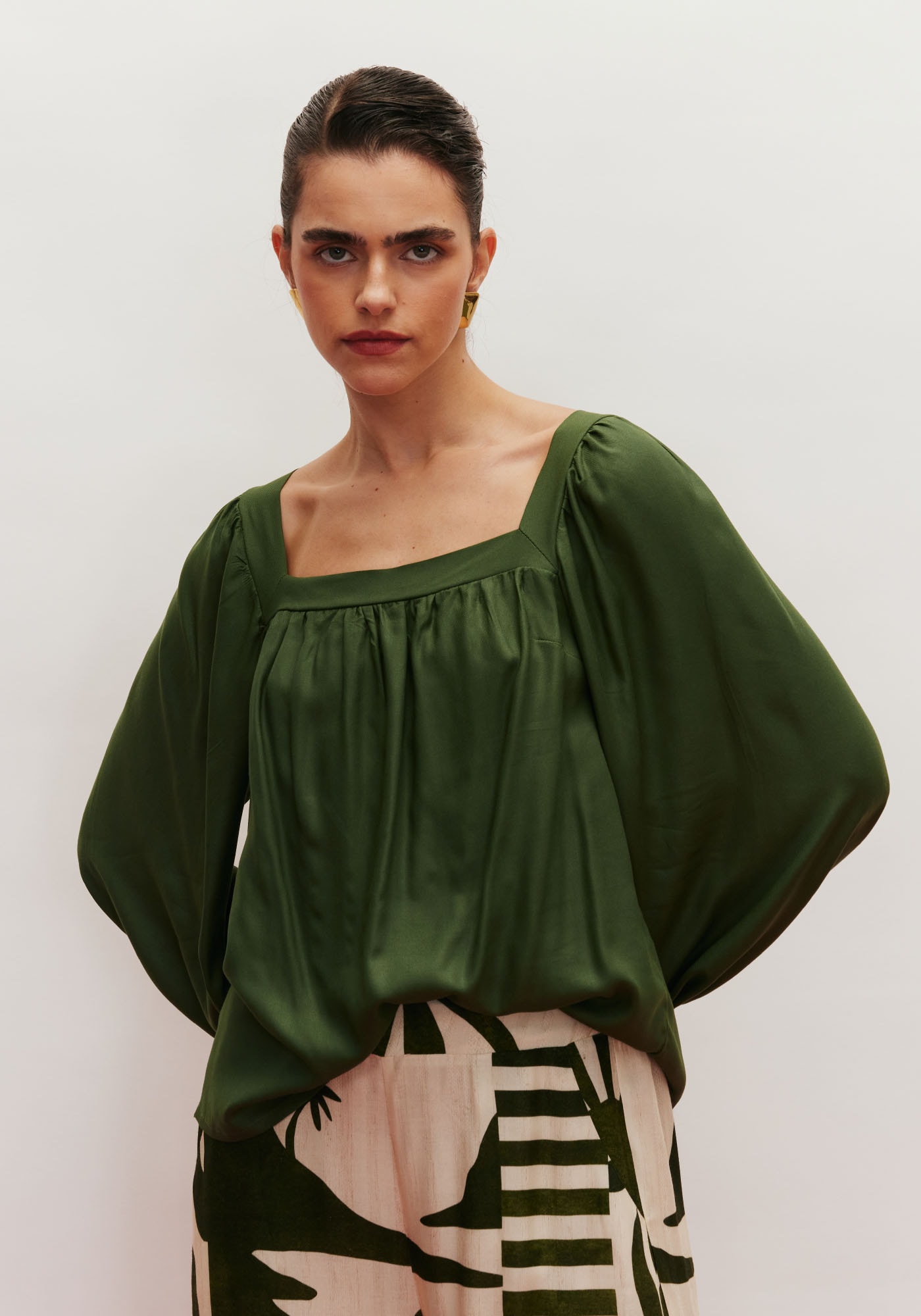 A bata é um modelo sofisticado eversátil. Confeccionado em tecido 100% viscose, possui shape solto e decotequadrado com manga ampla. Para proporcionar maior segurança, a parte de tráspossui trava finalizada com ponteiras.