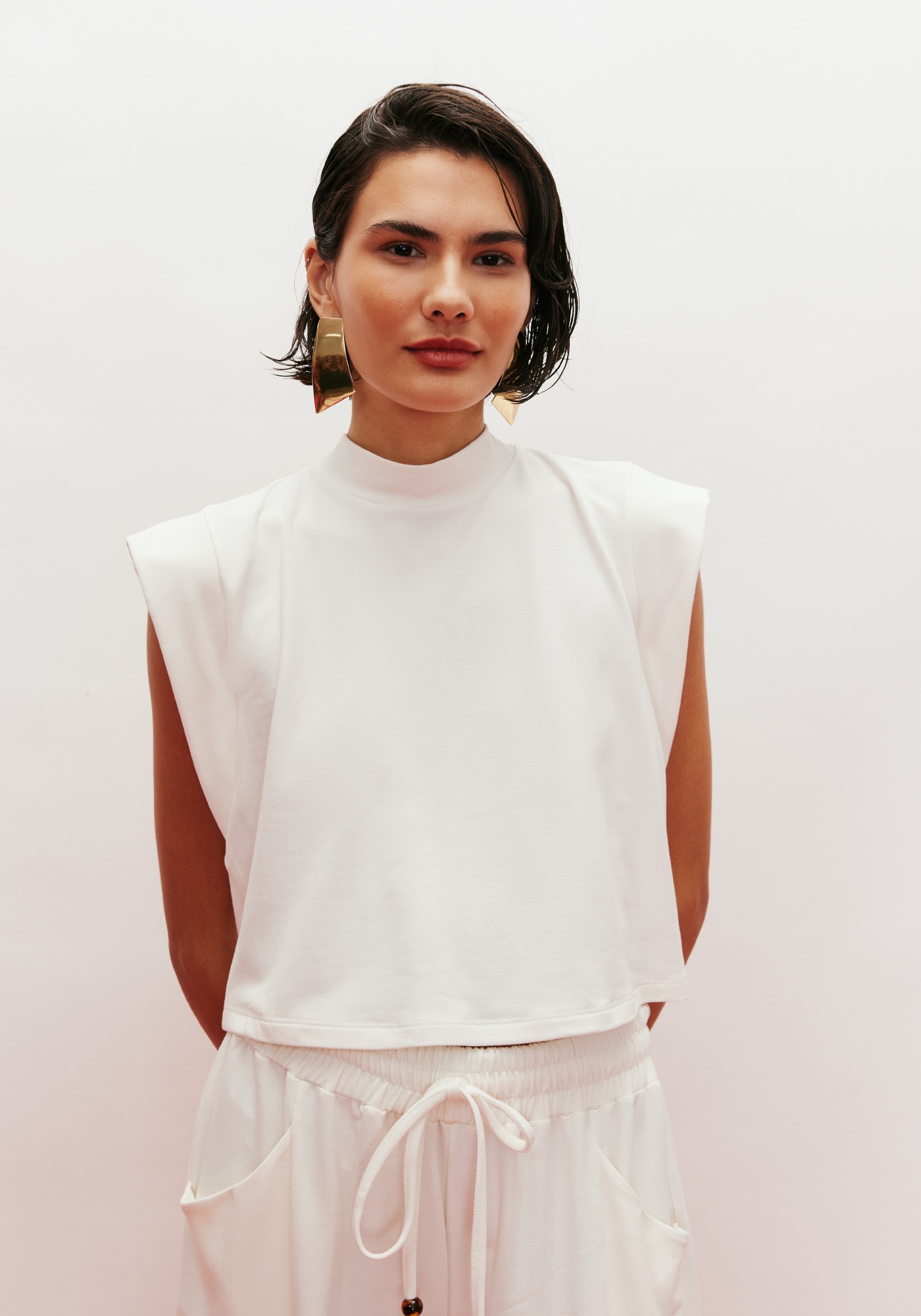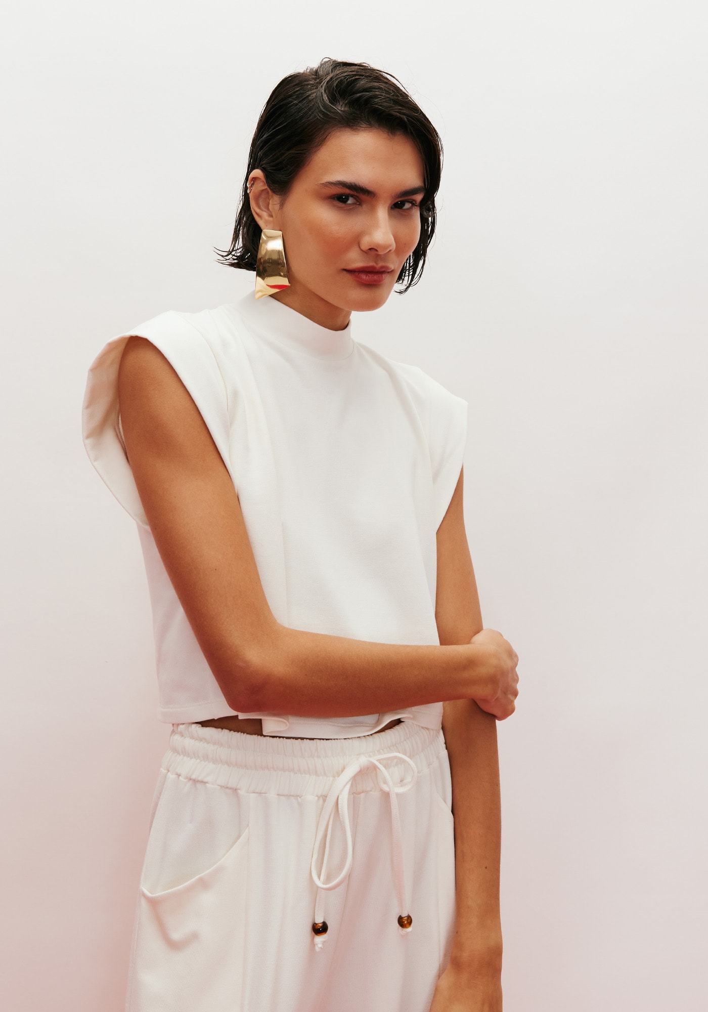 Confeccionada em tecido 94% viscose 6%elastano, a blusa cropped é um modelo que completa qualquer look de forma estilosae moderna. O modelo em cor lisa possui o shape solto, gola alta e manga estilocopinho.