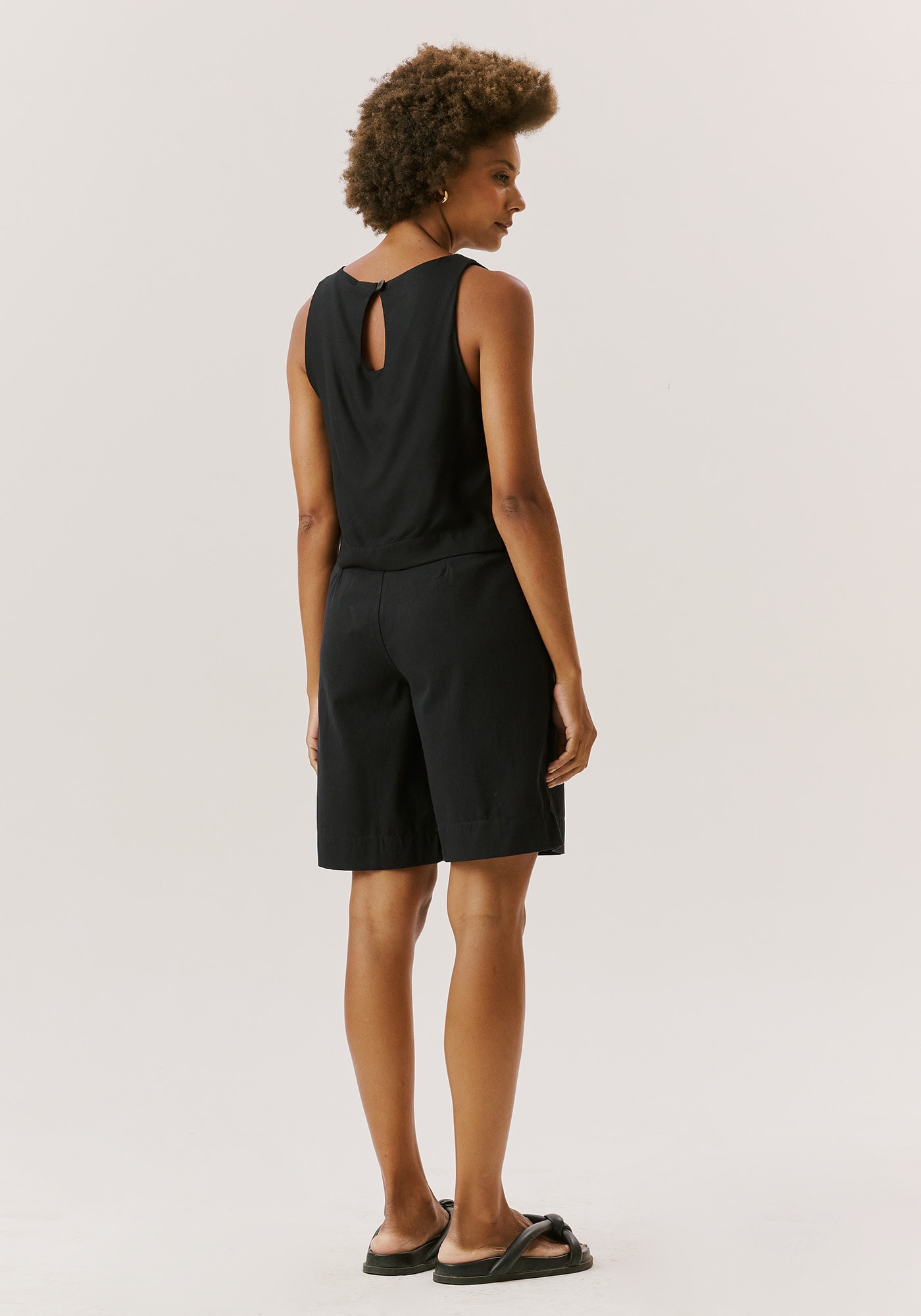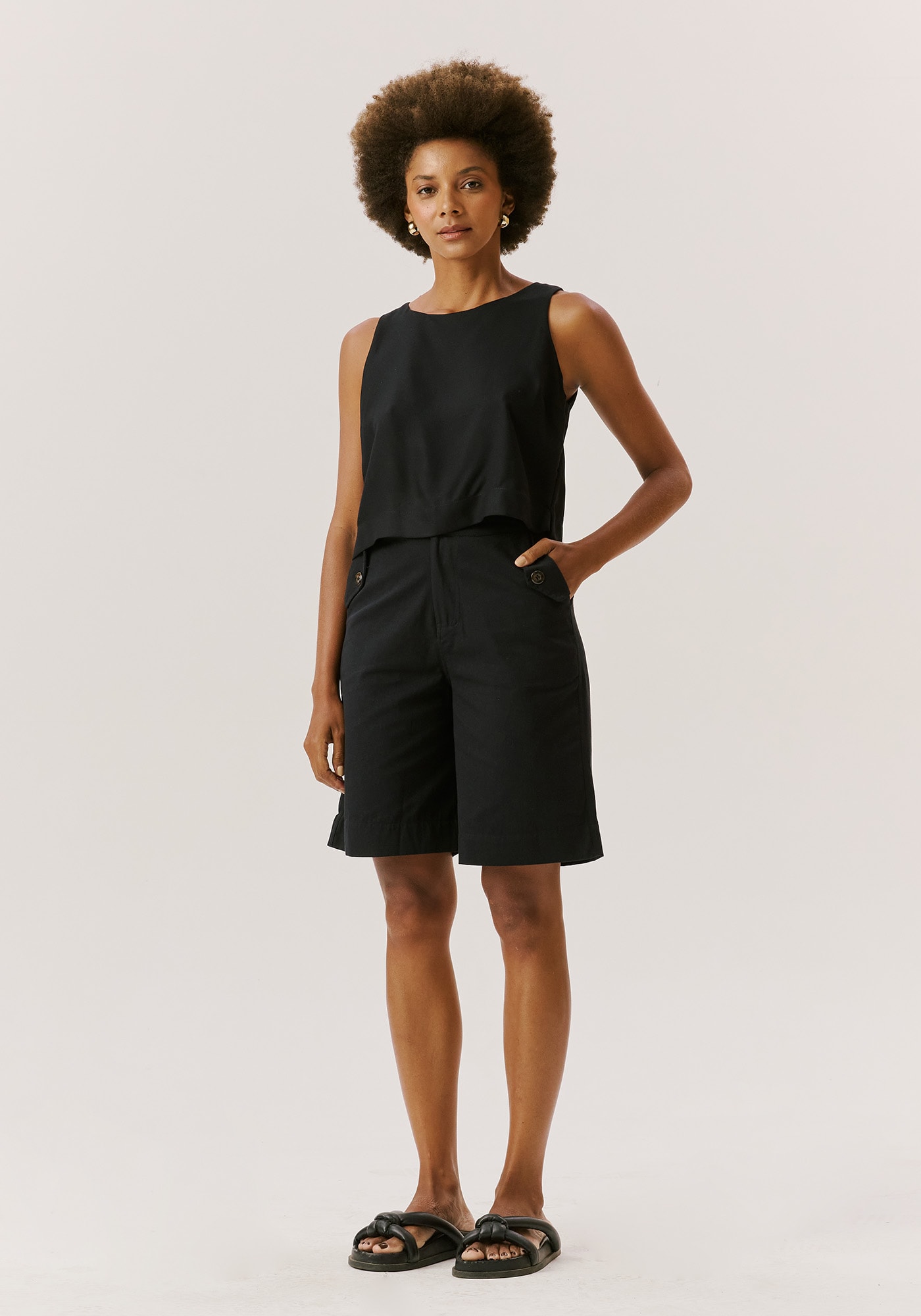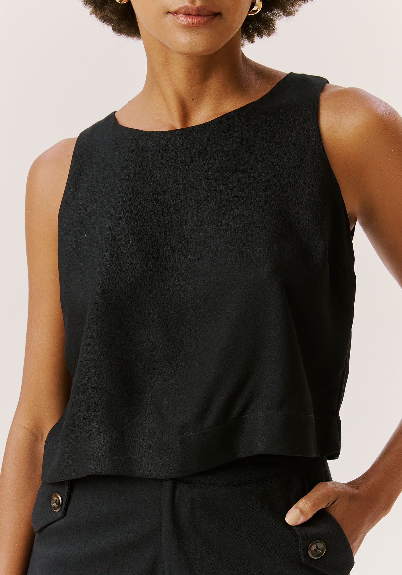 Esta blusa combina simplicidade eelegância, se tornando um item versátil e essencial em todo guarda-roupa. Seucomprimento cropped torna o look mais moderno, e possui fechamento em gota nascostas adicionando um toque sutil e charmoso. Feita em tecido 100% viscose, éuma peça que pode ser combinada com diversos estilos e ideal para um visualprático porém sofisticado.