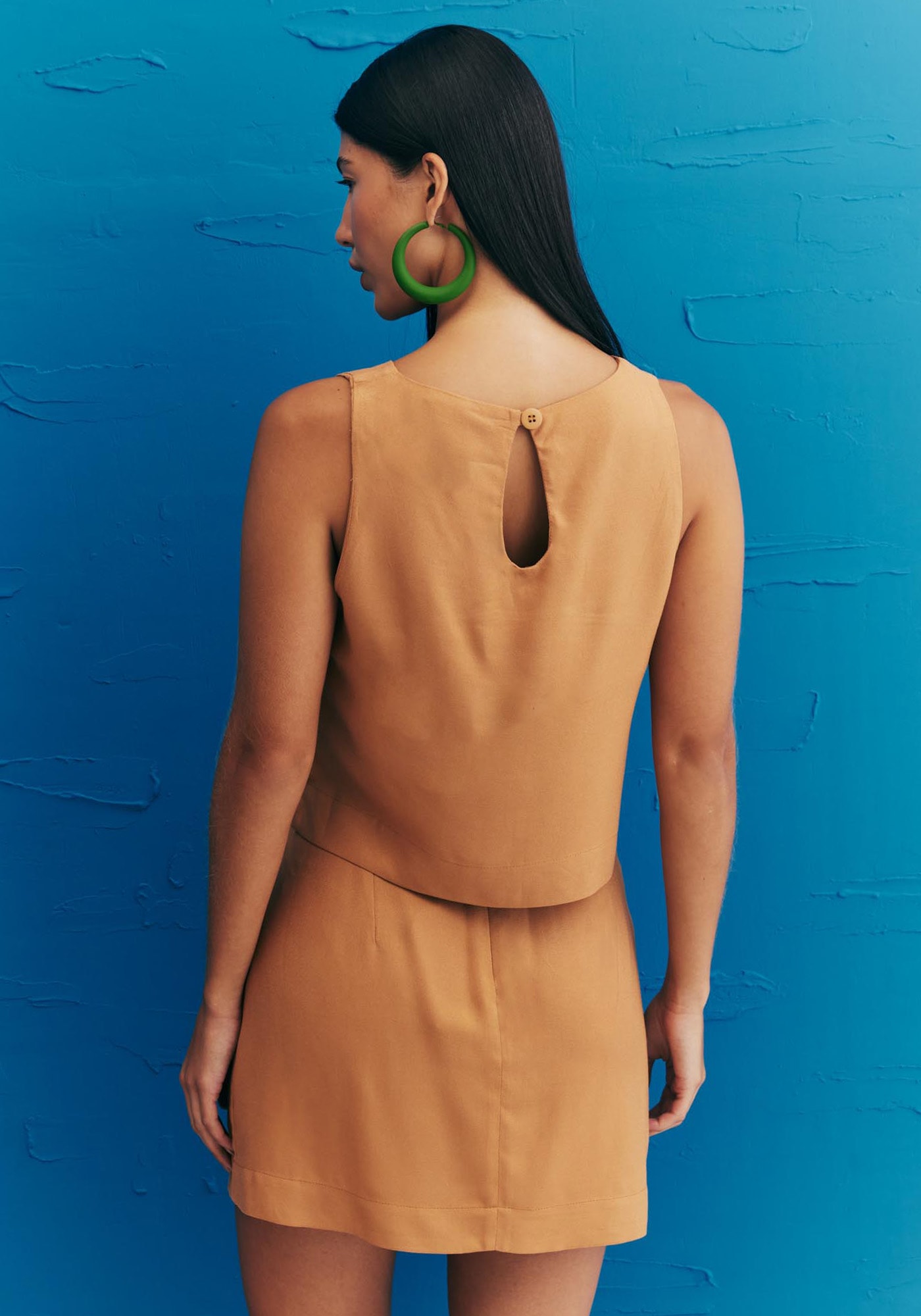 Esta blusa combina simplicidade eelegância, se tornando um item versátil e essencial em todo guarda-roupa. Seucomprimento cropped torna o look mais moderno, e possui fechamento em gota nascostas adicionando um toque sutil e charmoso. Feita em tecido 100% viscose, éuma peça que pode ser combinada com diversos estilos e ideal para um visualprático porém sofisticado.