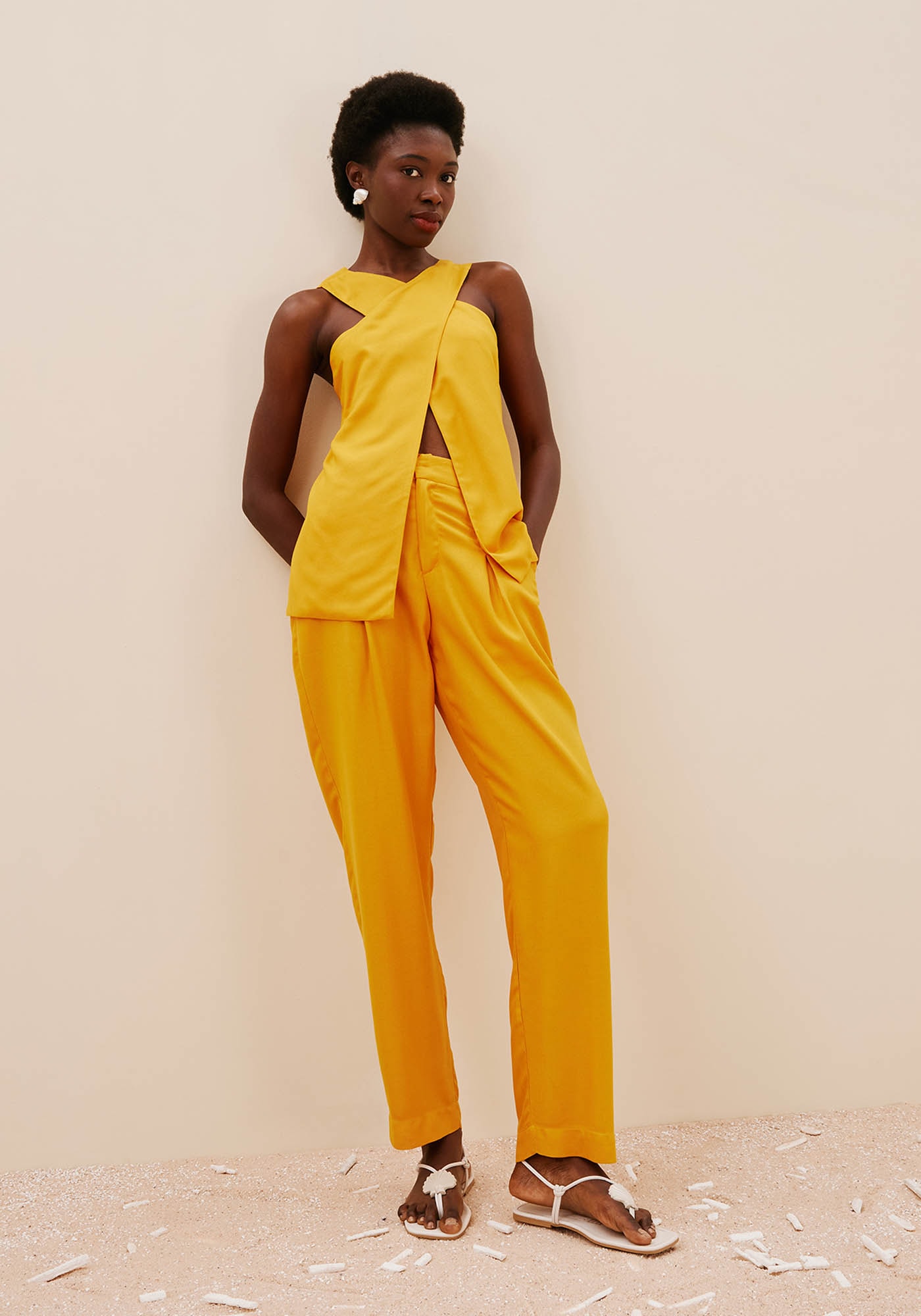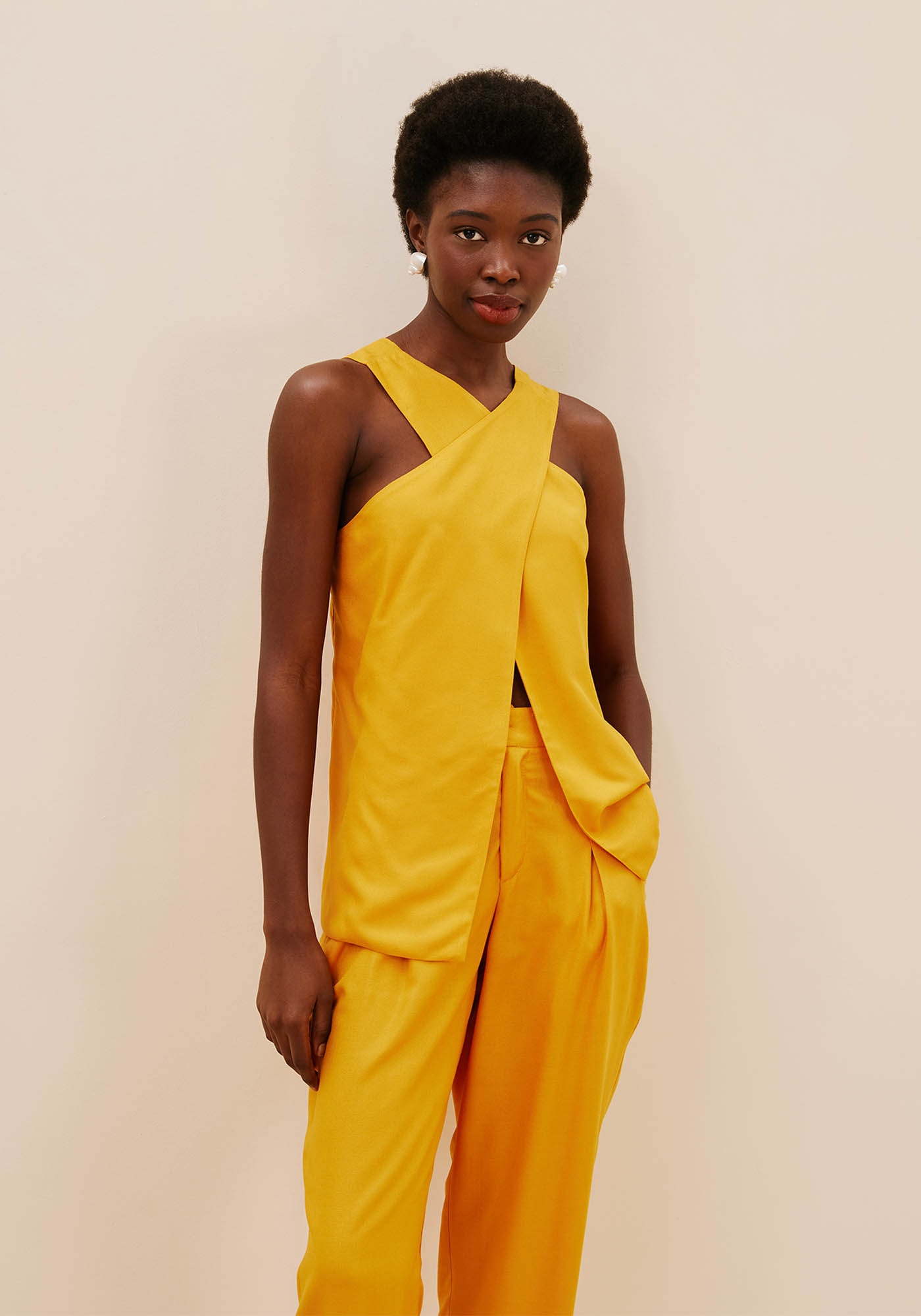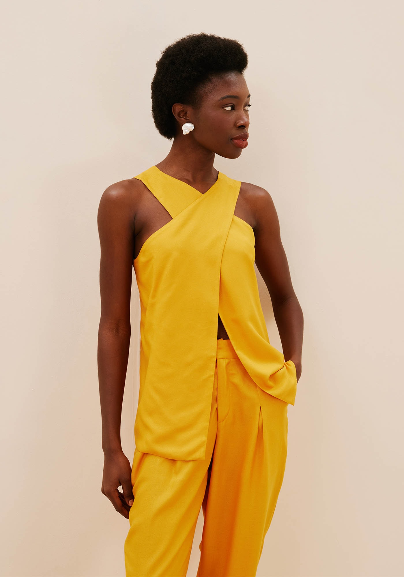 Elegante e sofisticada, a blusa confeccionadaem tecido 100% viscose possui um design diferenciado, com alças médias cruzadasna parte da frente, que formam uma leve abertura. O shape é solto e alongado.