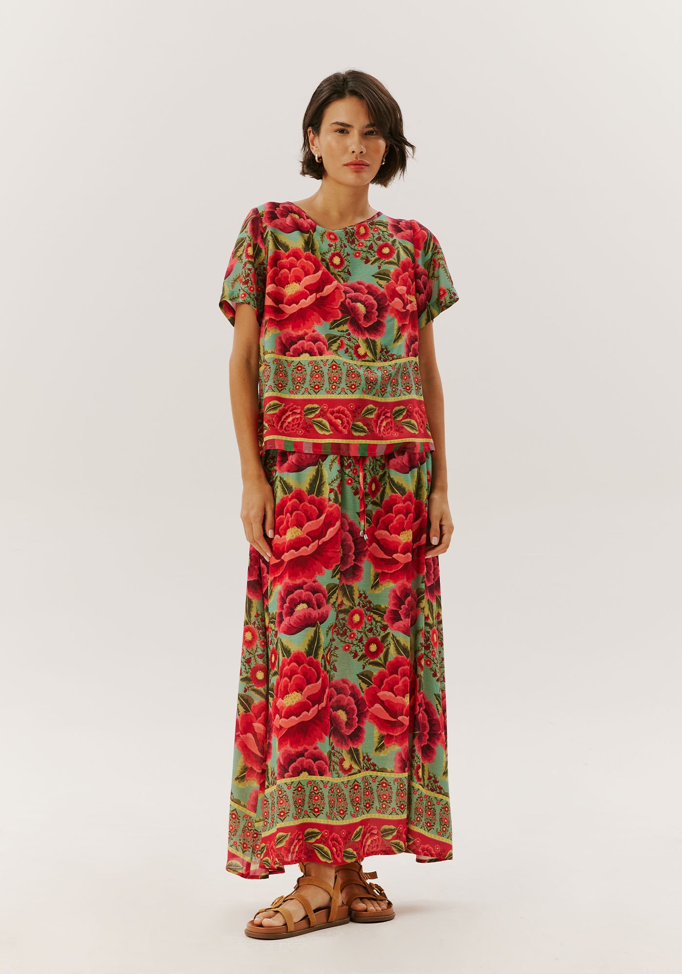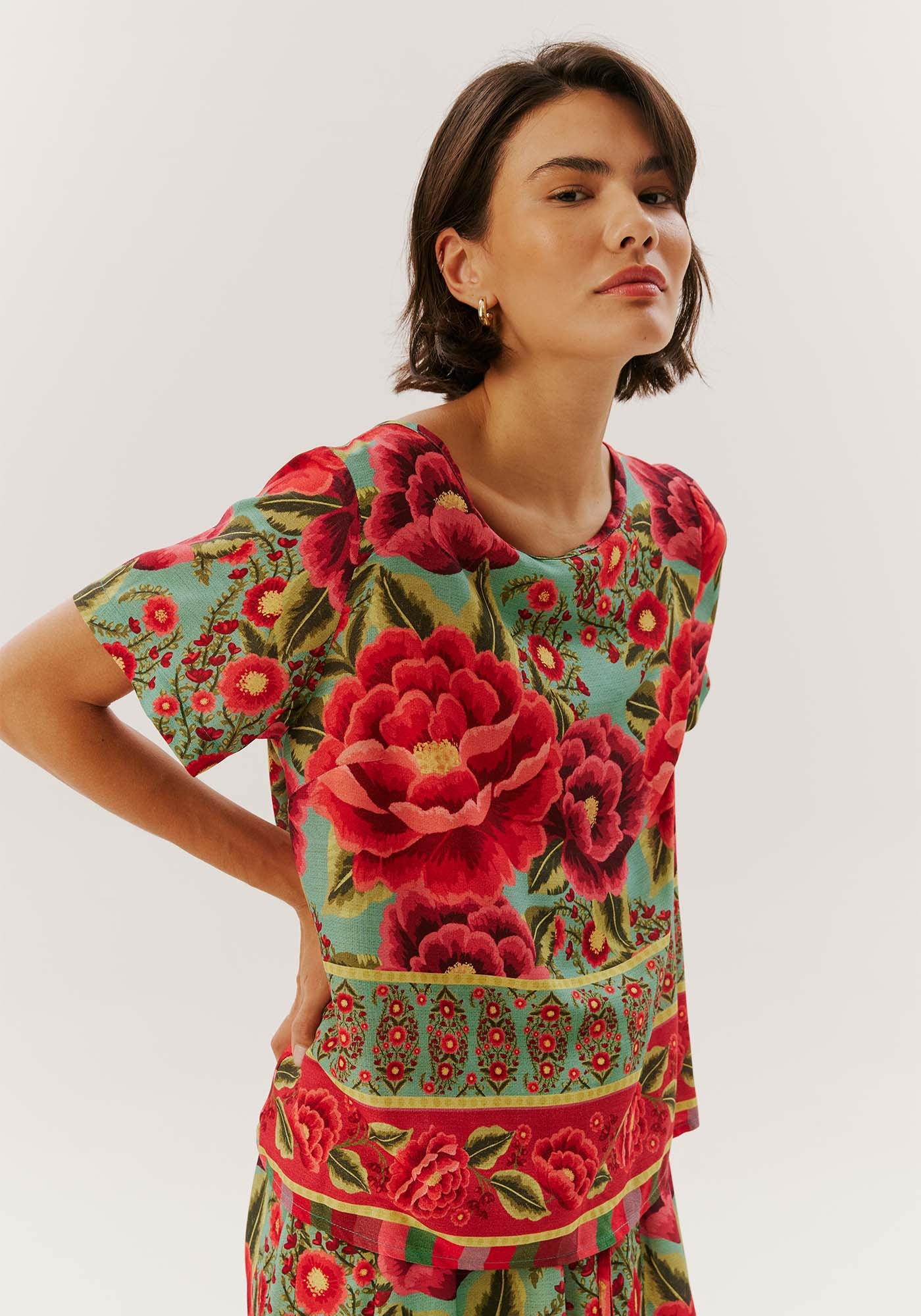 Blusa em viscose com decote canoa, finalizado com um laçoposterior, proporcionando um toque encantador. O comprimento amplo e as mangascurtas tornam esta peça uma escolha leve e elegante, perfeita para diversasocasiões.