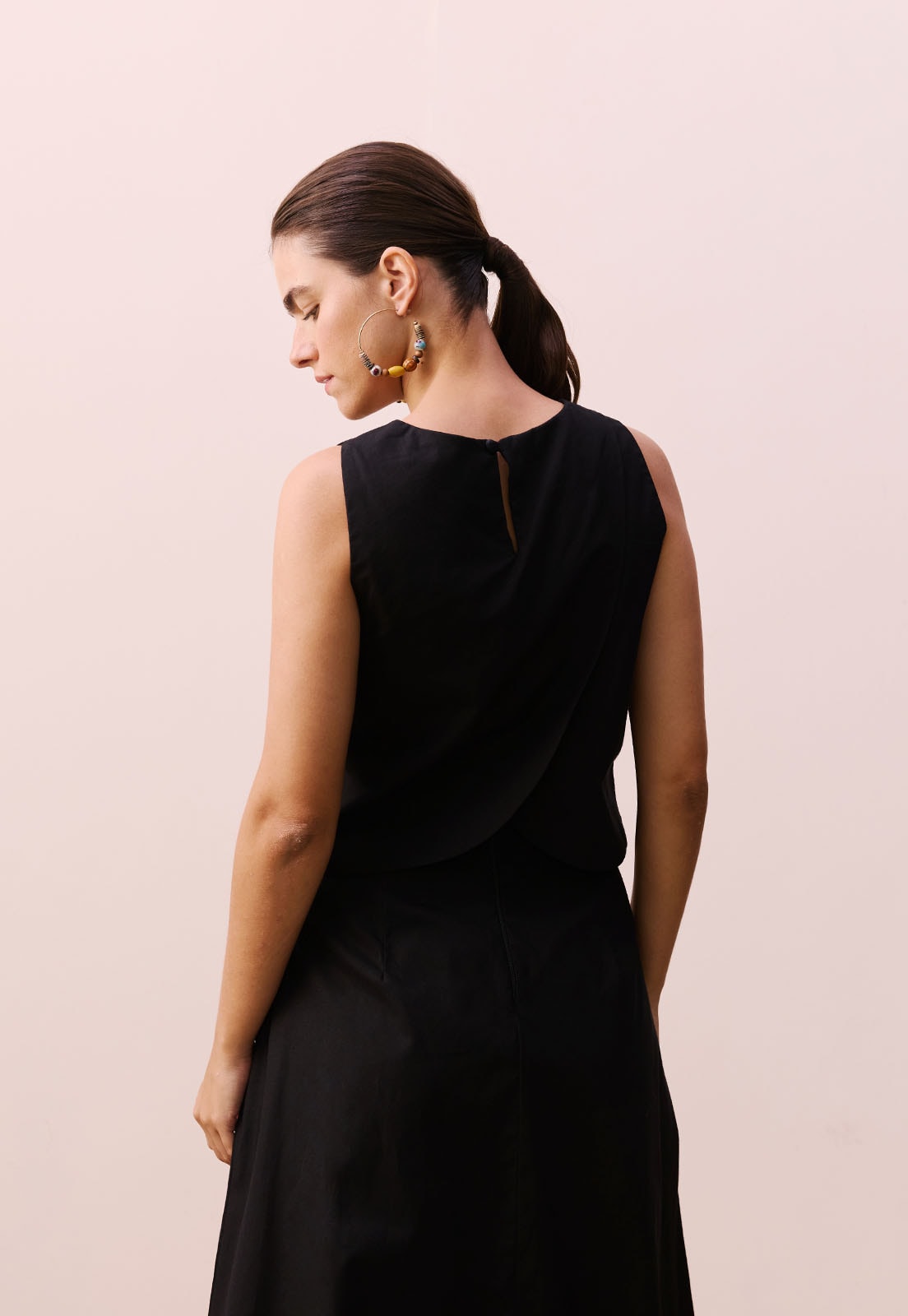 A blusa decote transpassado costas da CaCay é uma peça que une leveza e sofisticação com design atemporal. Com modelagem reta e caimento fluido, ela oferece liberdade ao vestir sem perder a estrutura. O decote frontal é alto e discreto, enquanto o detalhe transpassado nas costas, com abertura em formato de gota e fechamento por botão, adiciona personalidade e frescor ao visual. Confeccionada em 100% algodão, a peça tem toque suave, excelente respirabilidade e acabamento limpo ideal para quem busca conforto com estilo. A modelo veste tamanho P e tem 1,77m de altura, evidenciando o ajuste natural da peça.