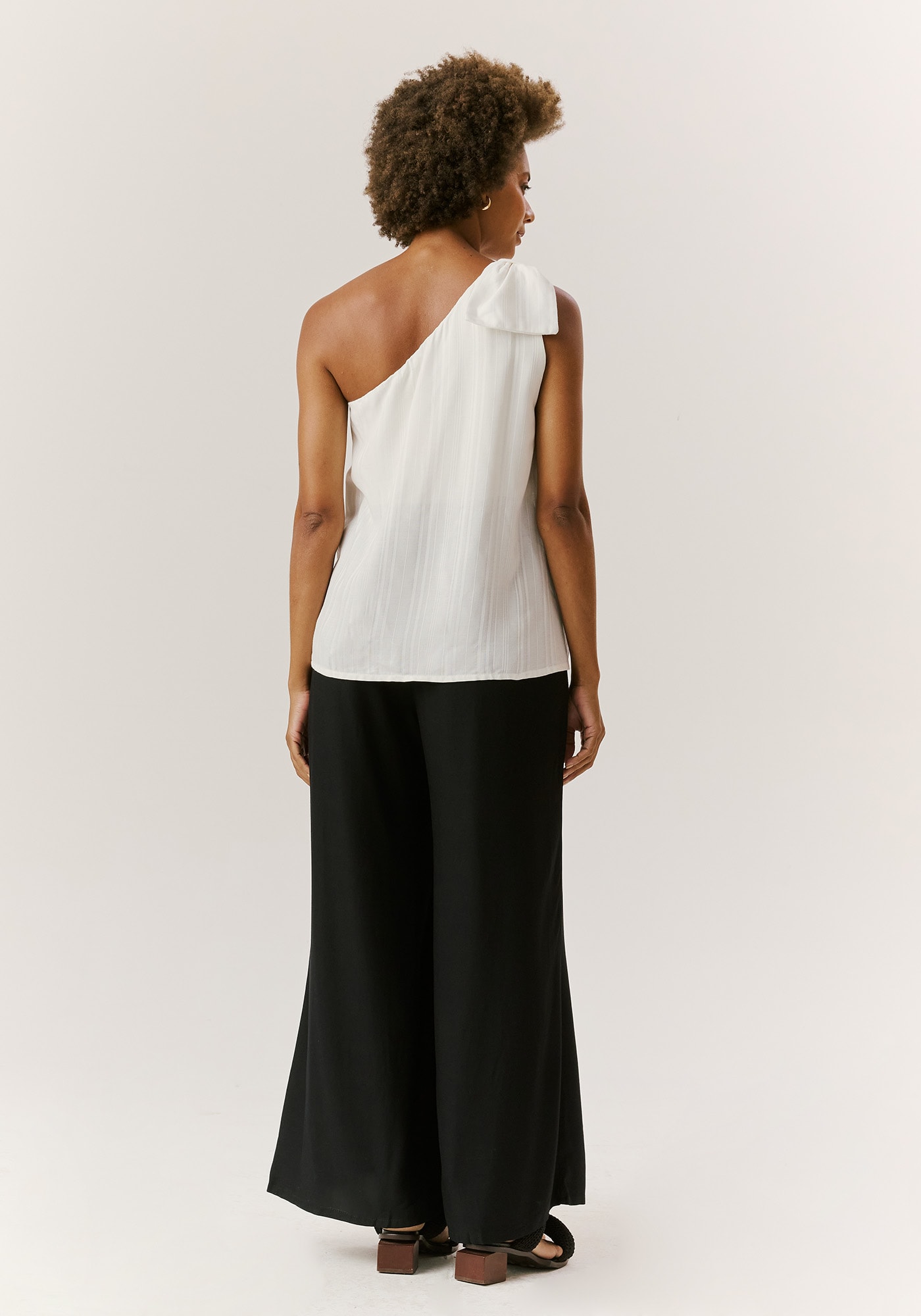 A Blusa Detalhe Laço Ombro é uma peçacharmosa e elegante, perfeita para adicionar um toque sofisticado e único aoseu guarda-roupa de verão. Seu design de um ombro só e modelagem ampla conferemmodernidade ao look. Seu destaque se dá pelo laço no ombro que adiciona umdetalhe feminino e estiloso, elevando o seu visual. Seu tecido é composto por100% viscose.