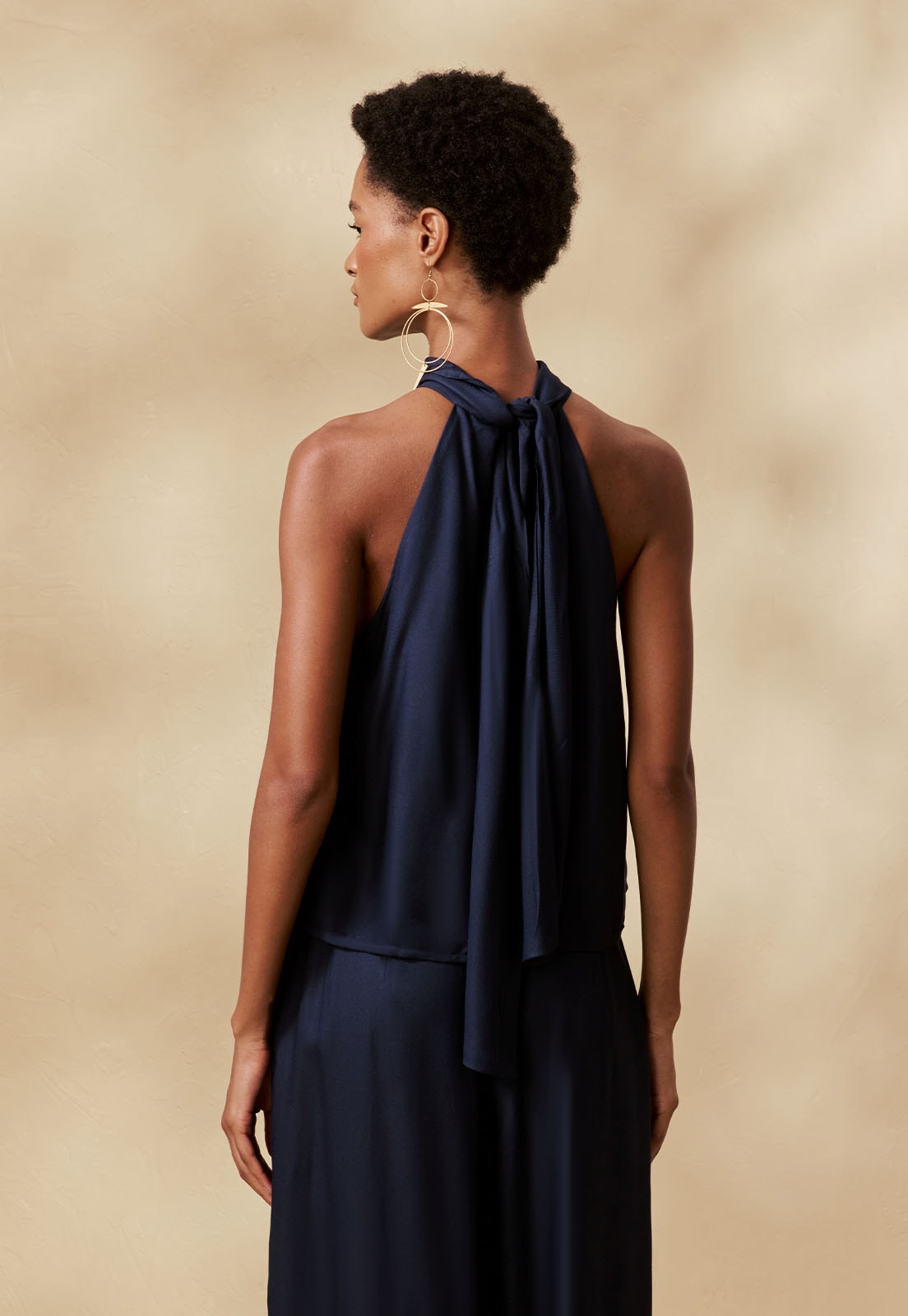 A Blusa Gola Alta da CaCay tem modelagem sofisticada e atemporal, com caimento solto, acompanha suavemente a linha da cintura, garantindo conforto e leveza. A amarração no pescoço permite ajuste delicado, enquanto o comprimento favorece diferentes silhuetas. A forma é grande, então se estiver em dúvida entre dois tamanhos, escolha o menor e consulte a tabela de medidas para precisão. Na foto, a modelo tem 1,75m, veste manequim 36 e usa o tamanho P.