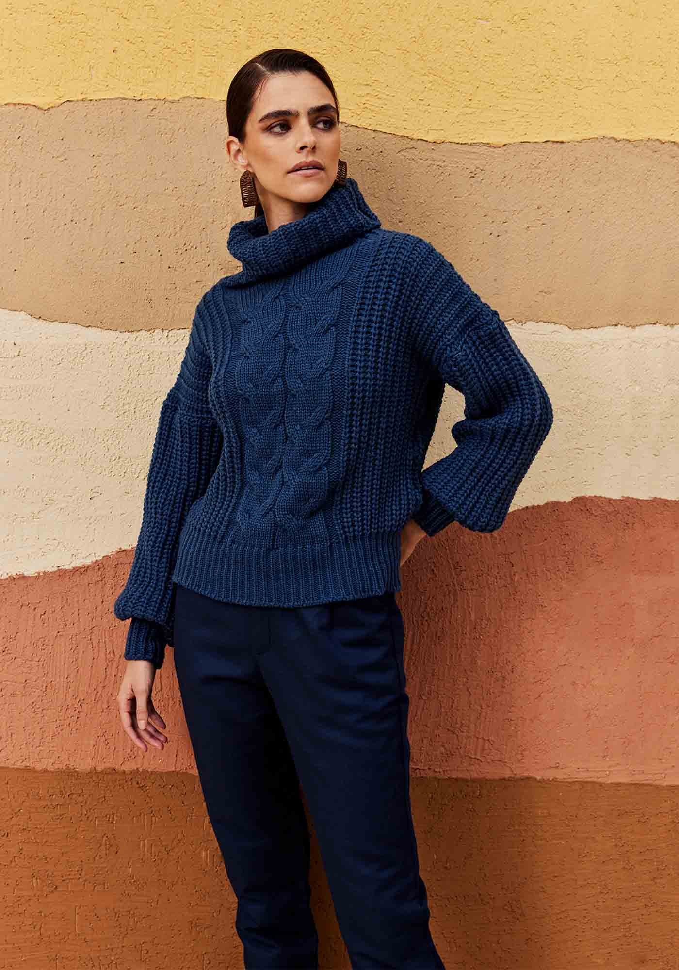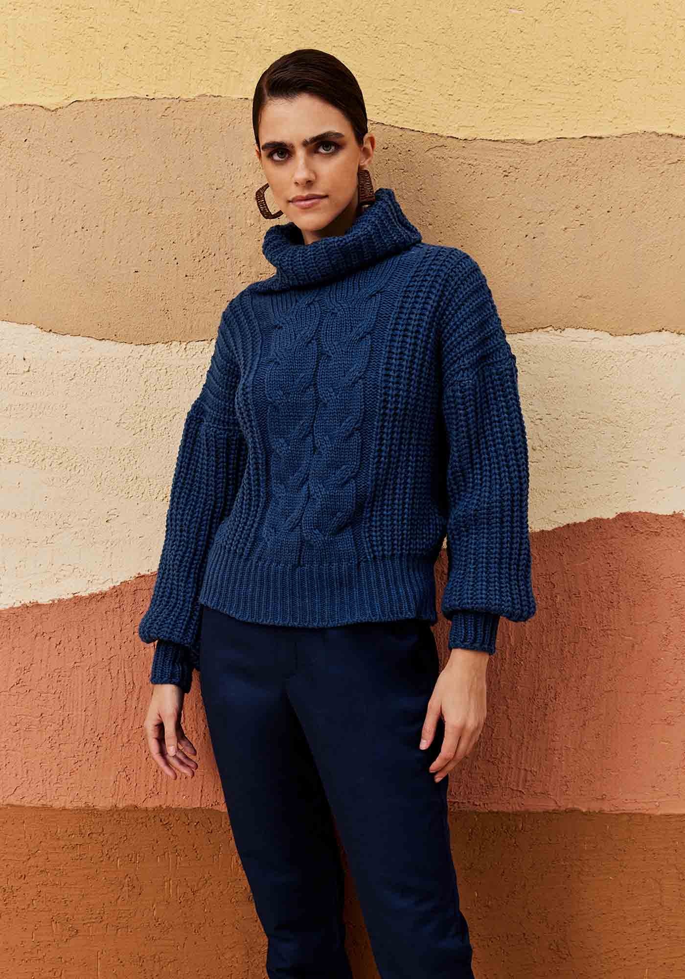 Elegância e textura se encontram nesta Blusa Gola Alta confecionada em tricot com detalhe de tranças na parte frontal, que acrescentam um charme adicional à peça. As mangasbufantes e a pala no punho e na barra trazem um toque de feminilidade, enquantoa gola alta volumosa garante aconchego e um visual imponente. A peça é perfeitapara aqueles dias mais frios, oferecendo o equilíbrio ideal entre conforto eestilo, seja para um look casual ou para um evento mais sofisticado.