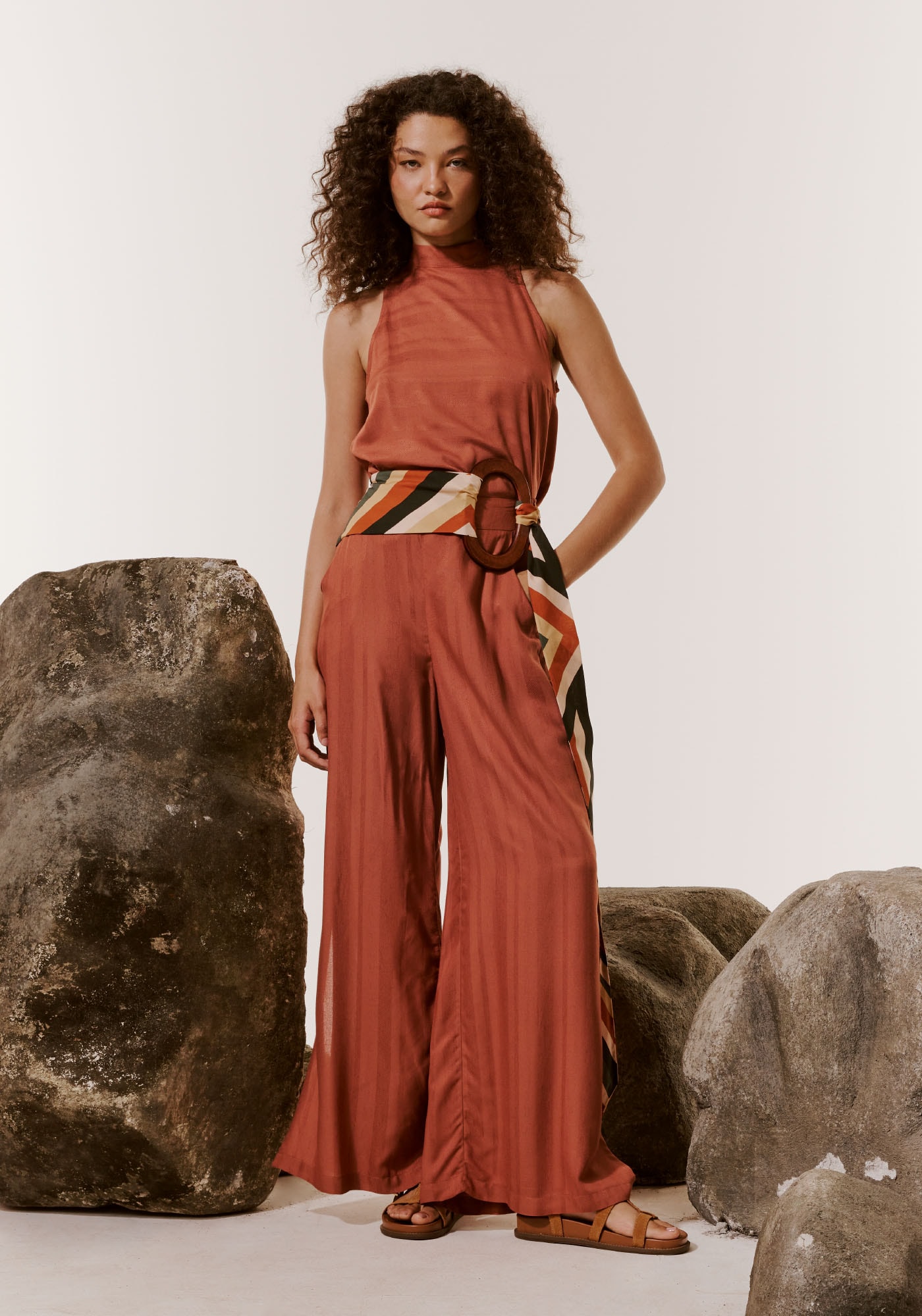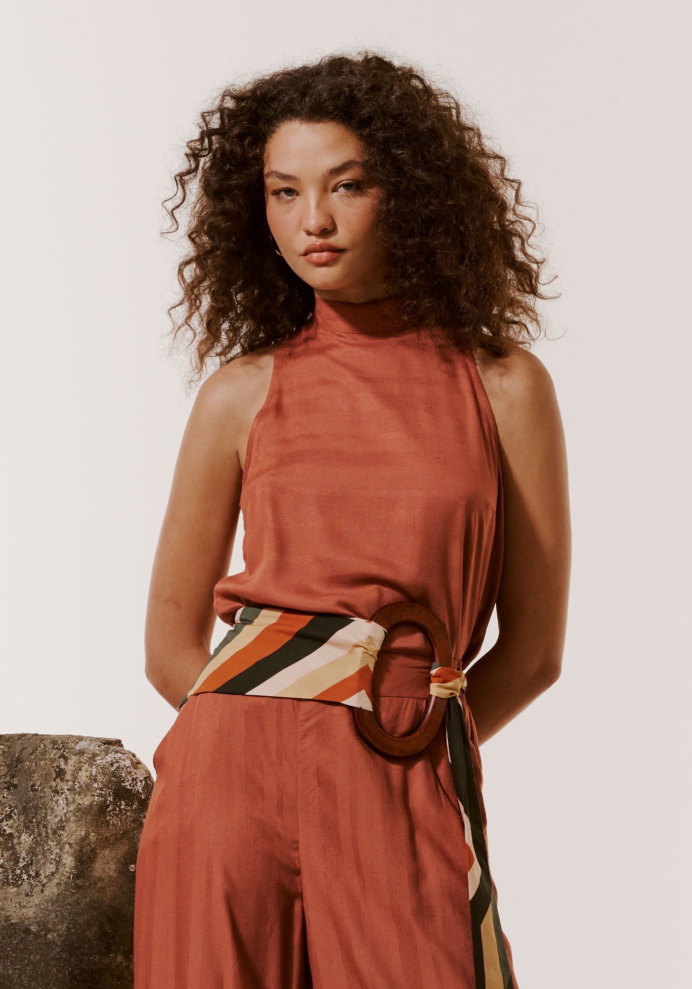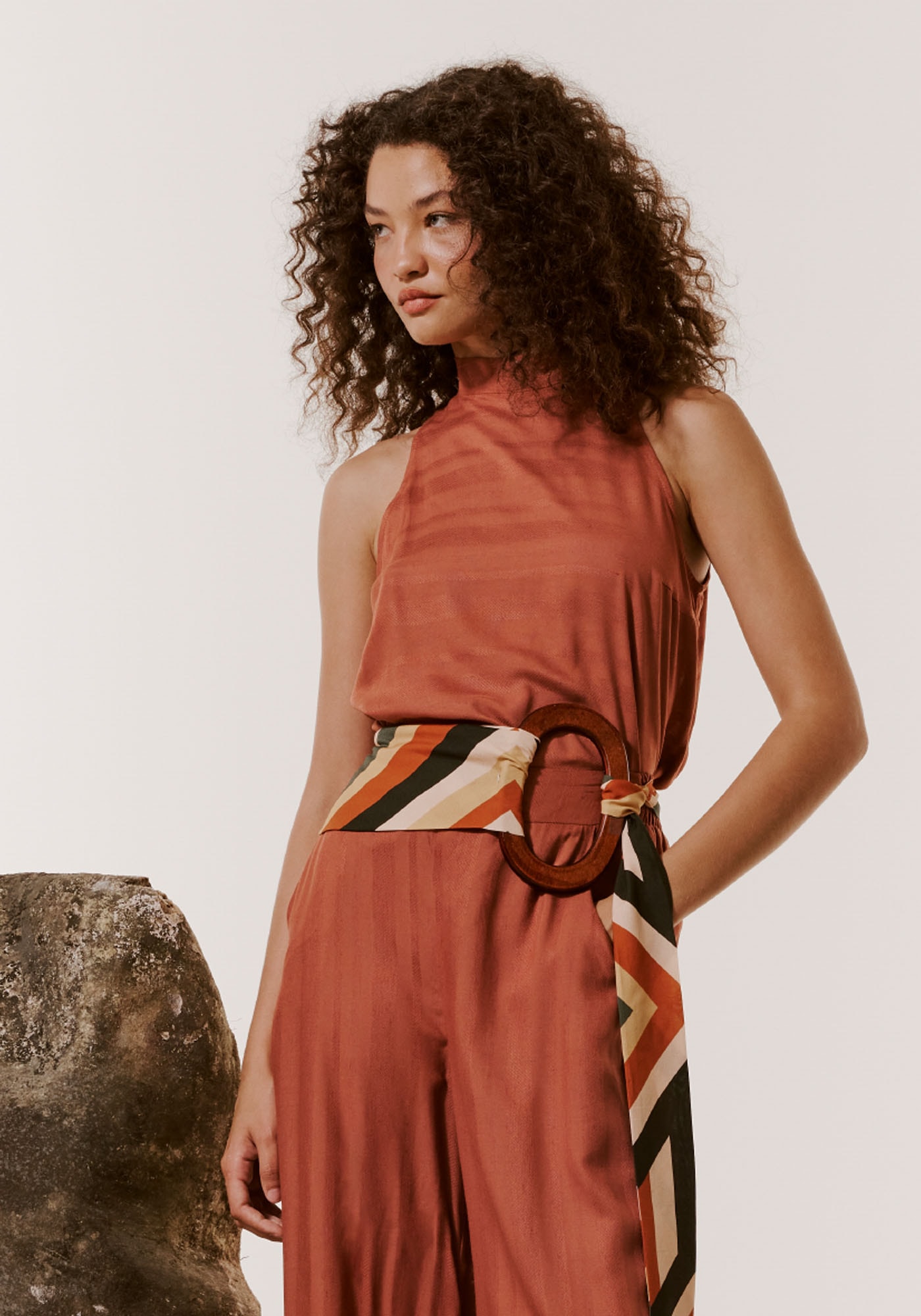 Nossa blusa em gola alta adiciona ao seu guarda-roupa um toque desofisticação. É confeccionada em 97% viscose e 3% linho, e sua amarração naparte das costas confere ainda mais charme à peça.