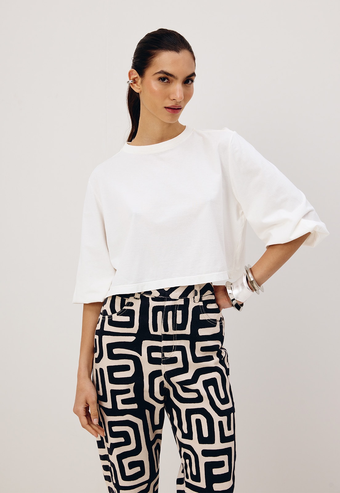 A blusa lisa é confeccionada em tecido 100% algodão. É um modelo com manga bufante, básico e versátil,que pode ser usada em diversas combinações e looks.