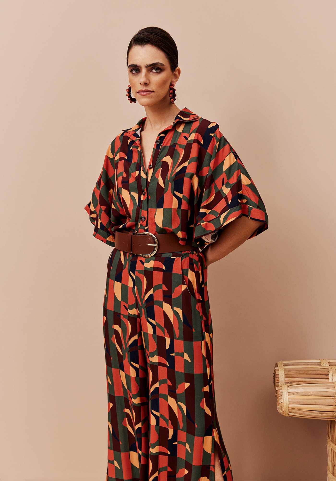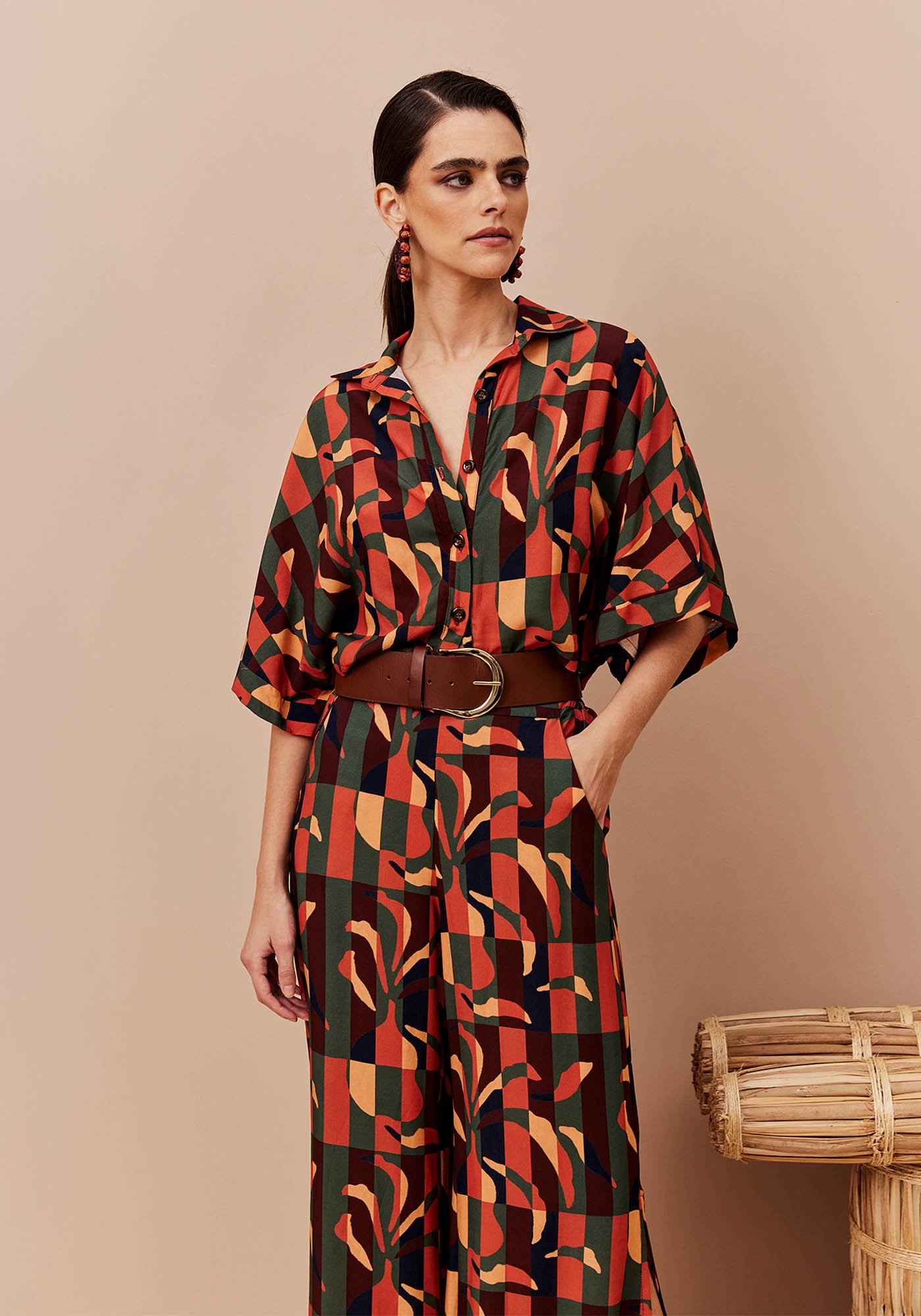 Confeccionadaem tecido 100% viscose, a blusa estampada Ayasana é sofisticada e elegante. Omodelo possui fechamento frontal com botões e manga ampla bem fluída e confortável.Pode ser usado em conjuntinhos, com outras peças da mesma estampa, ou lisas.