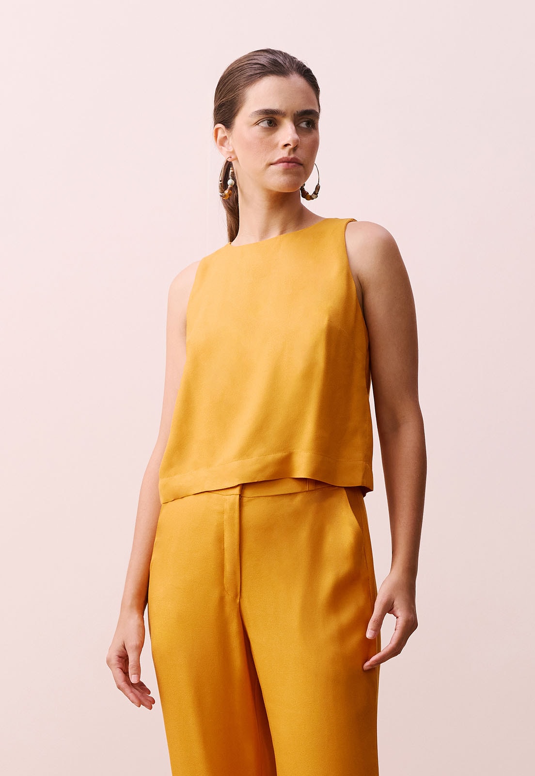 Minimalismo e frescor em uma blusa versátil ideal para compor looks modernos com leveza.