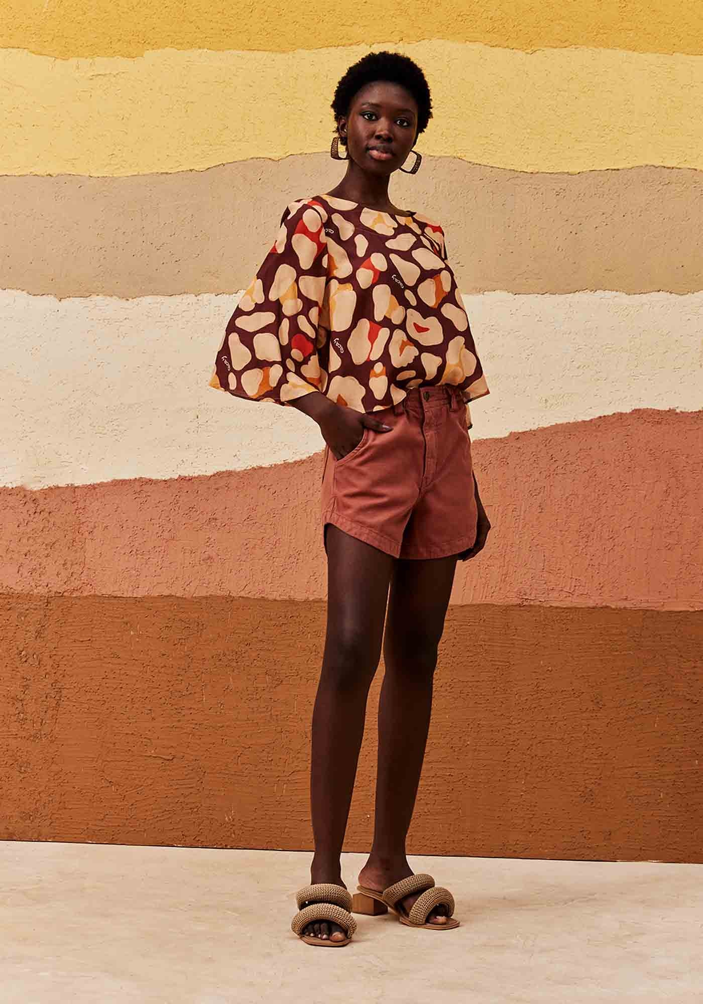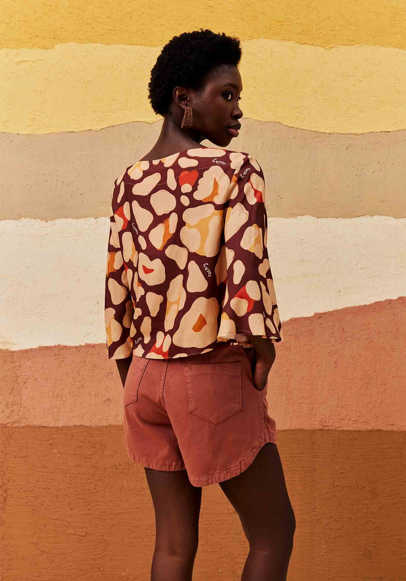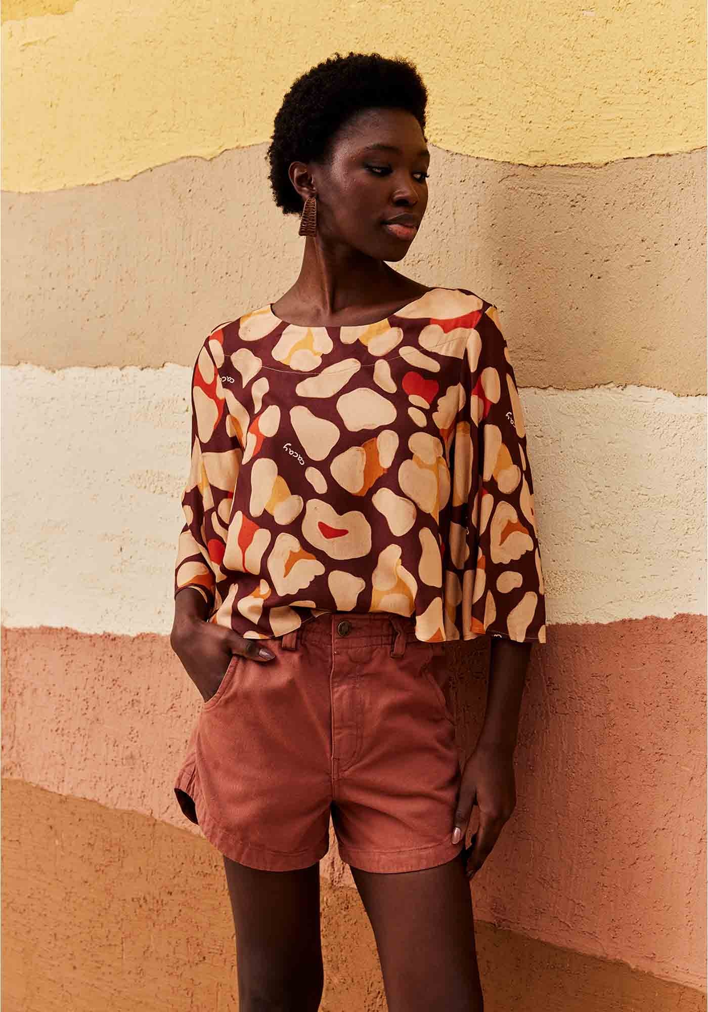 A Blusa Quadradinha é uma escolha moderna e cheia de personalidade. Apresenta modelagem ampla com caimento leve e fluido, decote canoa e mangas no estilo kimono. A peça se destaca pela encantadora estampa Onça Sami e é confeccionada em tecido 100% Viscose. Ideal para composições casuais mas também sofisticadas e versáteis.