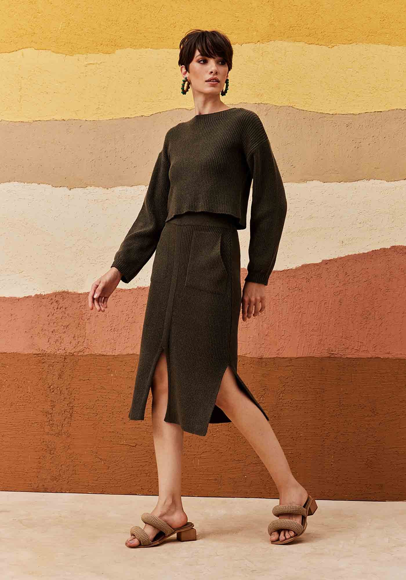 A blusa em tricô canelado é uma peça versátil e essencial no guarda-roupas. Com modelagem reta e comprimento cropped, ela traz um toque contemporâneo ao visual, equilibrando conforto e sofisticação. O decote canoa amplia a região do col, enquanto as mangas longas com caimento soltinho reforçam a proposta aconchegante.