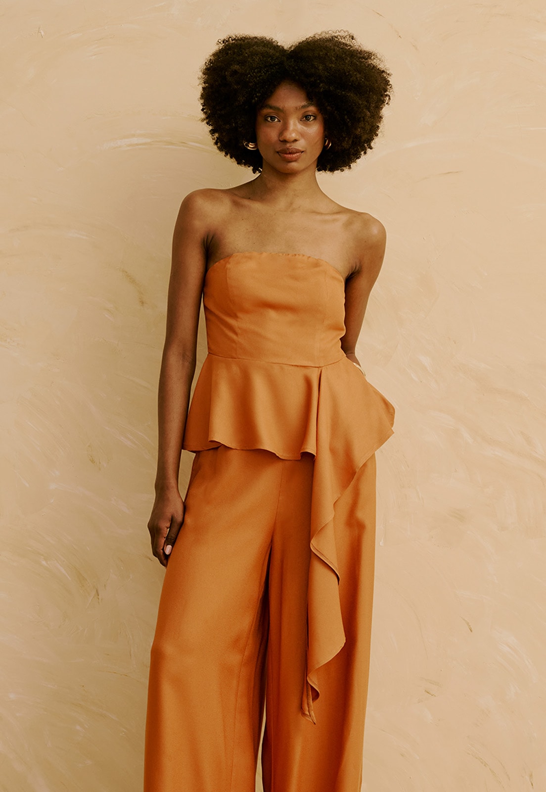A Blusa Tomara Que Caia Peplum Cascata da CaCay tem modelagem estruturada com caimento fluido e elegante. O busto é ajustado e firme, com sustentação suave, enquanto a cintura é marcada pelo recorte peplum que valoriza a silhueta. O detalhe cascata traz movimento e alonga a linha do corpo. A forma é grande. Se estiver em dúvida entre dois tamanhos, sugerimos optar pelo menor, sempre conferindo a tabela de medidas. A modelo da foto tem 1,75 m, veste manequim 36 e está usando o tamanho P.