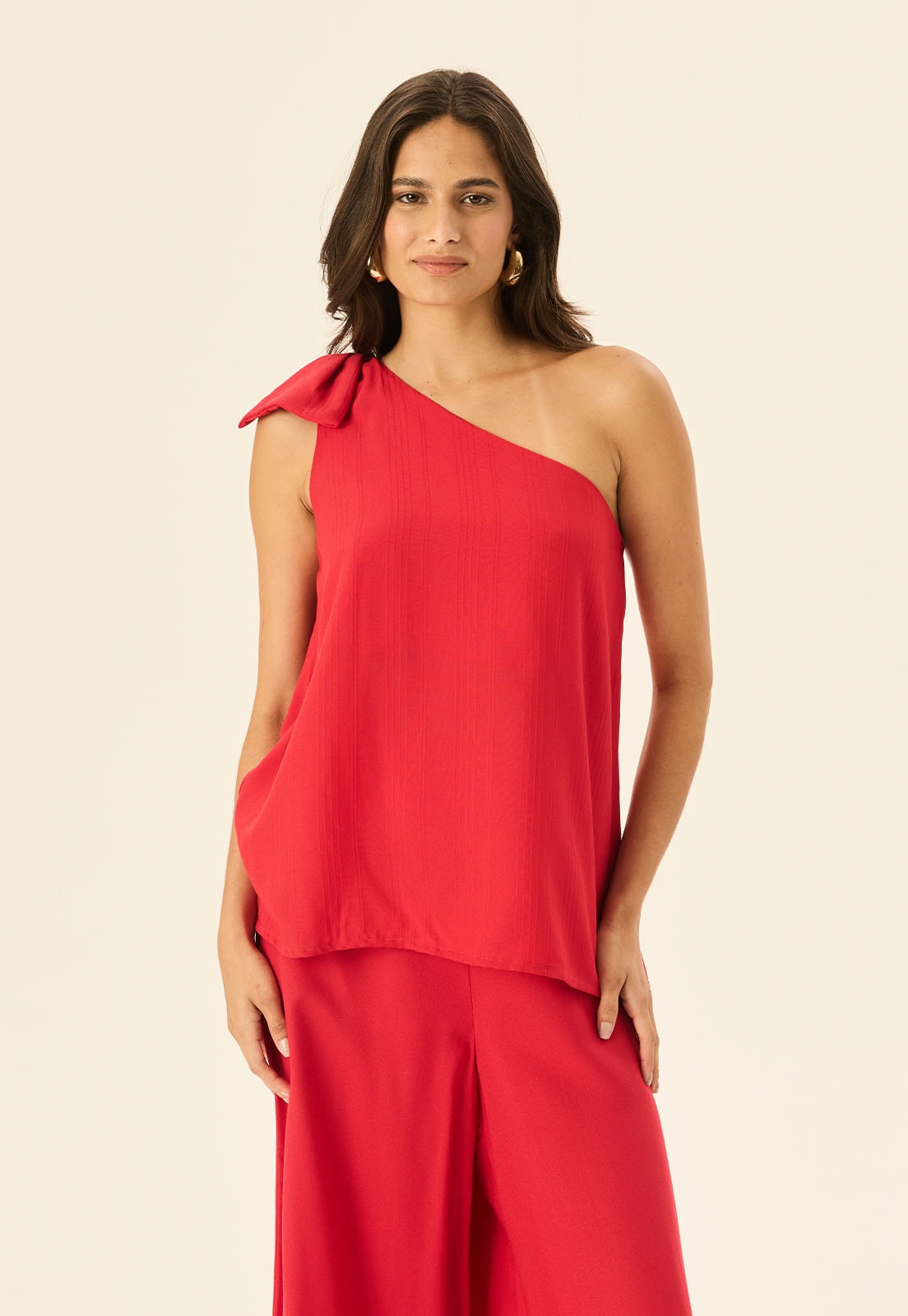 Descubra a elegância atemporal da Blusa Um Ombro Só Amarração CaCay, feita em 100% viscose para garantir leveza e conforto em cada movimento. Seu design assimétrico valoriza o colo com uma alça larga e detalhe de amarração no ombro, criando um visual sofisticado e fluido. O caimento é suave e natural, ideal para quem busca estilo sem abrir mão do bem-estar. A peça se adapta perfeitamente a diferentes silhuetas, como mostra a modelo que veste tamanho P e tem 1,77m de altura.