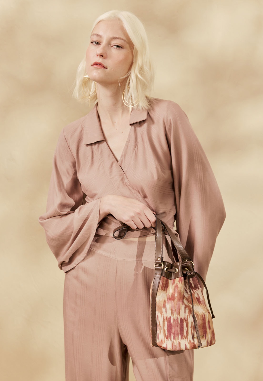 A Bolsa Bucket Sarja Estampada Niebla da CaCay combina praticidade e elegância em uma modelagem estruturada com caimento equilibrado junto ao corpo.