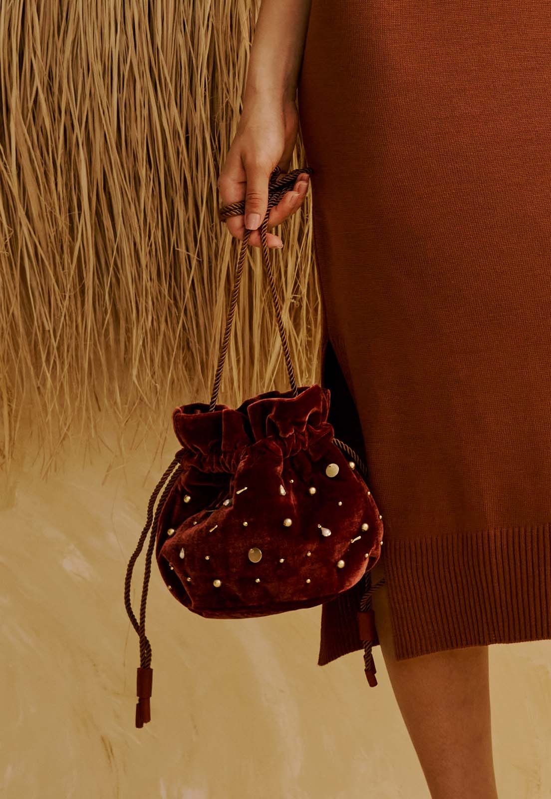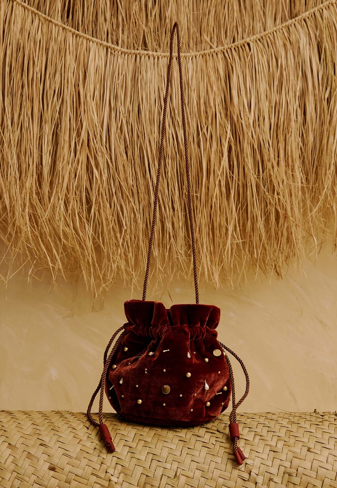 A Bolsa Saco em Veludo da CaCay é uma peça que une textura rica e design artesanal com toque sofisticado. Estruturada em veludo encorpado e macio, tem alça de cordão torcido que não marca a pele. O tamanho é compacto, ideal para levar o essencial, e o fechamento por amarração garante praticidade no dia a dia.