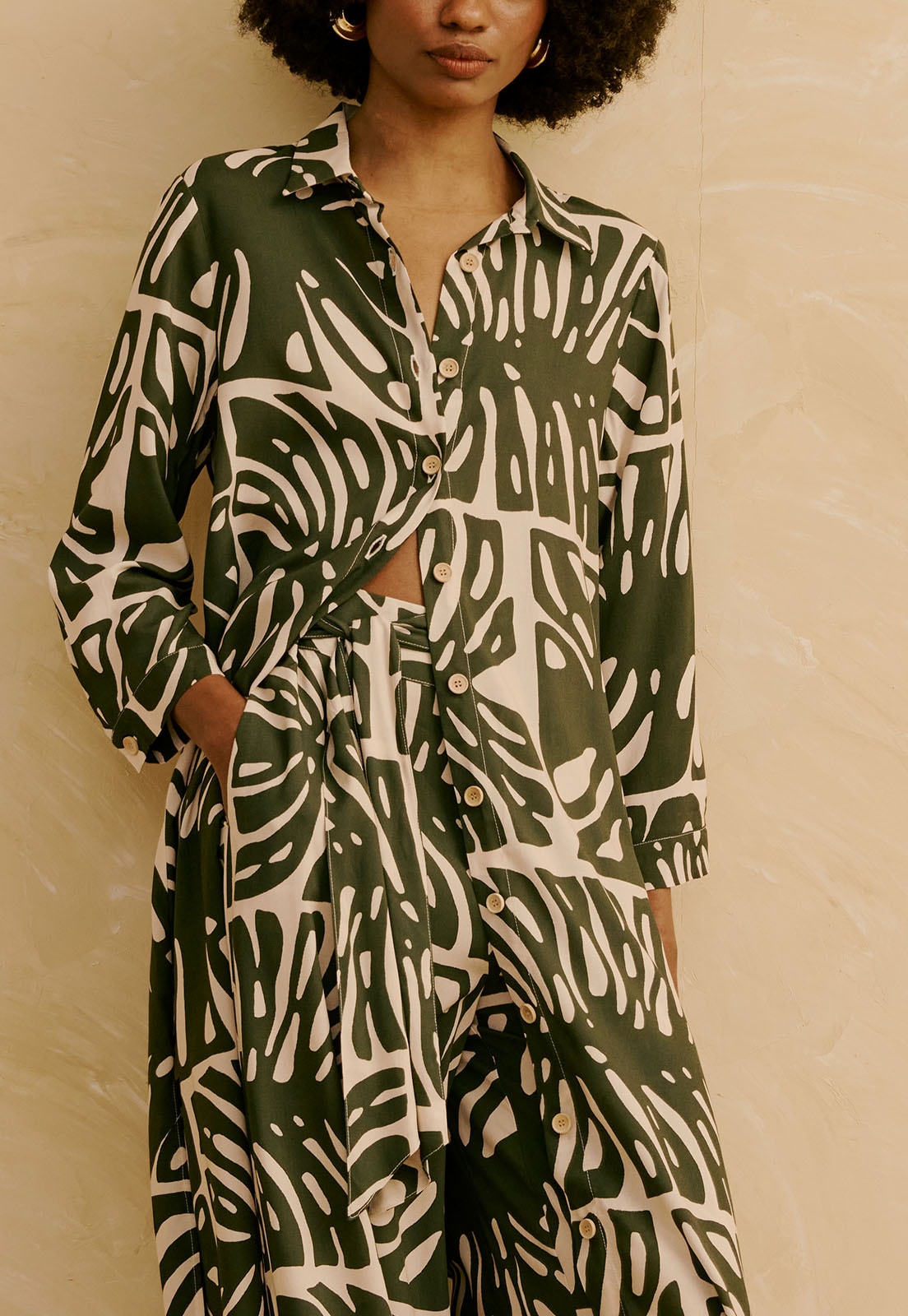 Confeccionada em viscose, o tecido é leve, sem elasticidade e pensado para uso prolongado com bem-estar. Versátil, a calça transita entre momentos casuais, trabalho ou encontros diurnos, sempre com estilo atemporal. A estampa adiciona personalidade e sofisticação. Combine com blusas leves, acessórios minimalistas ou sandálias para compor looks que equilibram conforto e elegância.