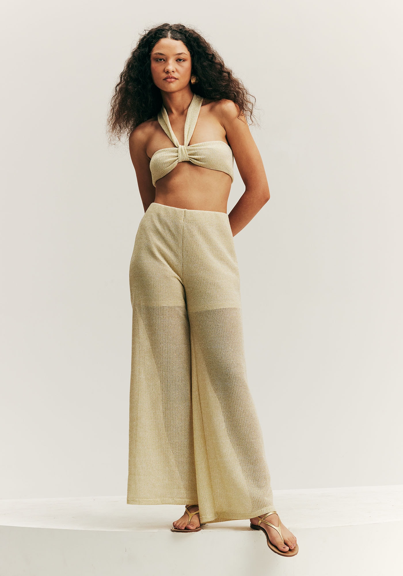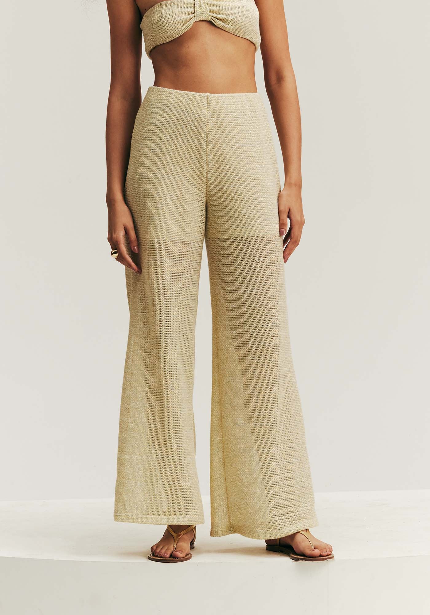 Confeccionada em tecido 100% poliéster, a calça é uma peça charmosa e sensual, que torna qualquer look único e memorável. É produzida com um tecido transparente e short no forro. O cós em elástico proporciona mais conforto.