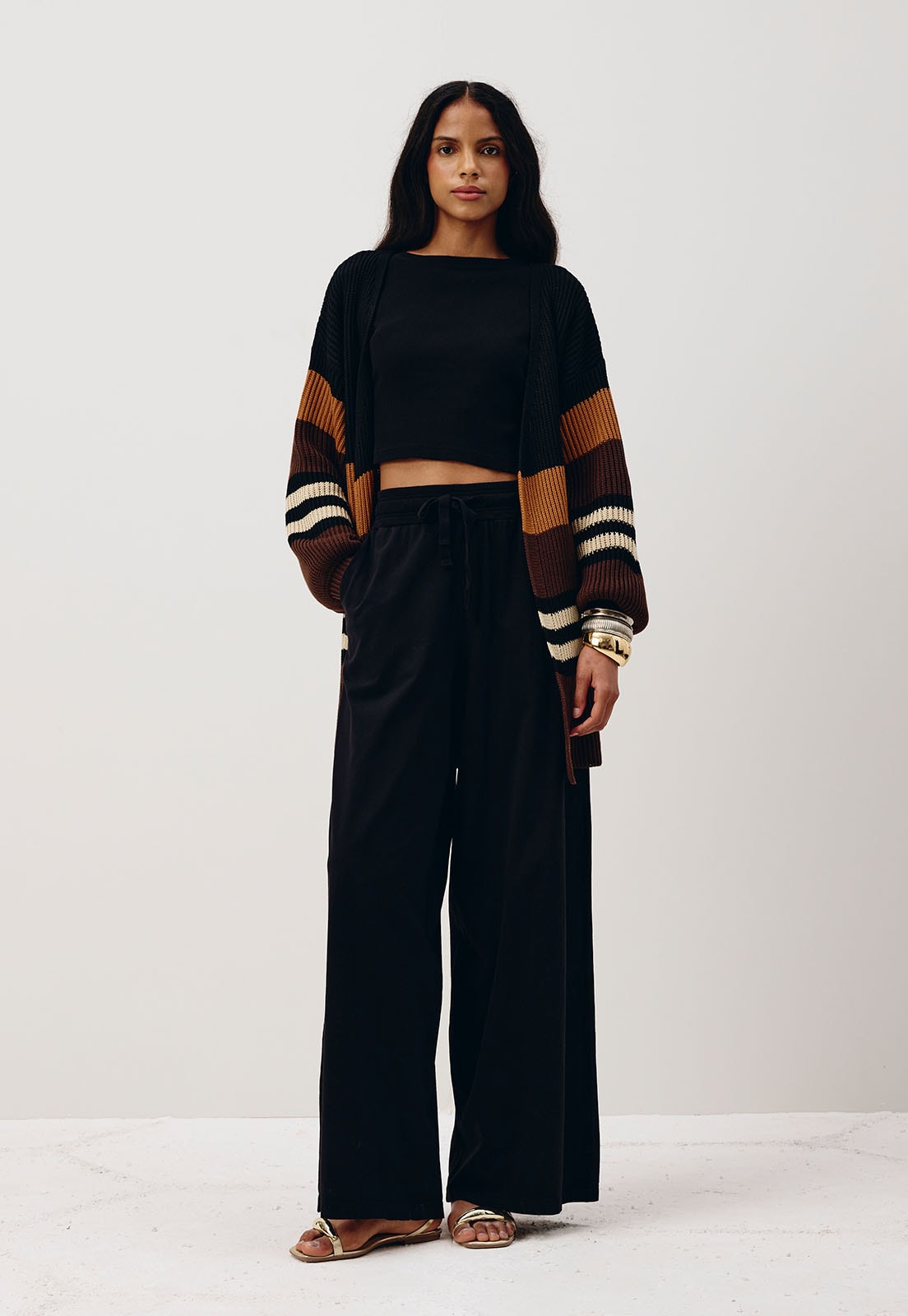 A Calça Ampla Estonada é a tradução do conforto com estilo descomplicado. Com modelagem solta e pernas largas, ela oferece caimento fluido e liberdade de movimento, ideal para quem busca leveza no vestir. O comprimento longo até os pés alonga a silhueta, enquanto a cintura alta com cordão ajustável garante praticidade e adaptação ao corpo. Confeccionada em 100% algodão, a peça tem toque macio, excelente respirabilidade e visual naturalmente despojado. A modelo veste tamanho P e tem 1,77m de altura, evidenciando o ajuste confortável e elegante da peça.