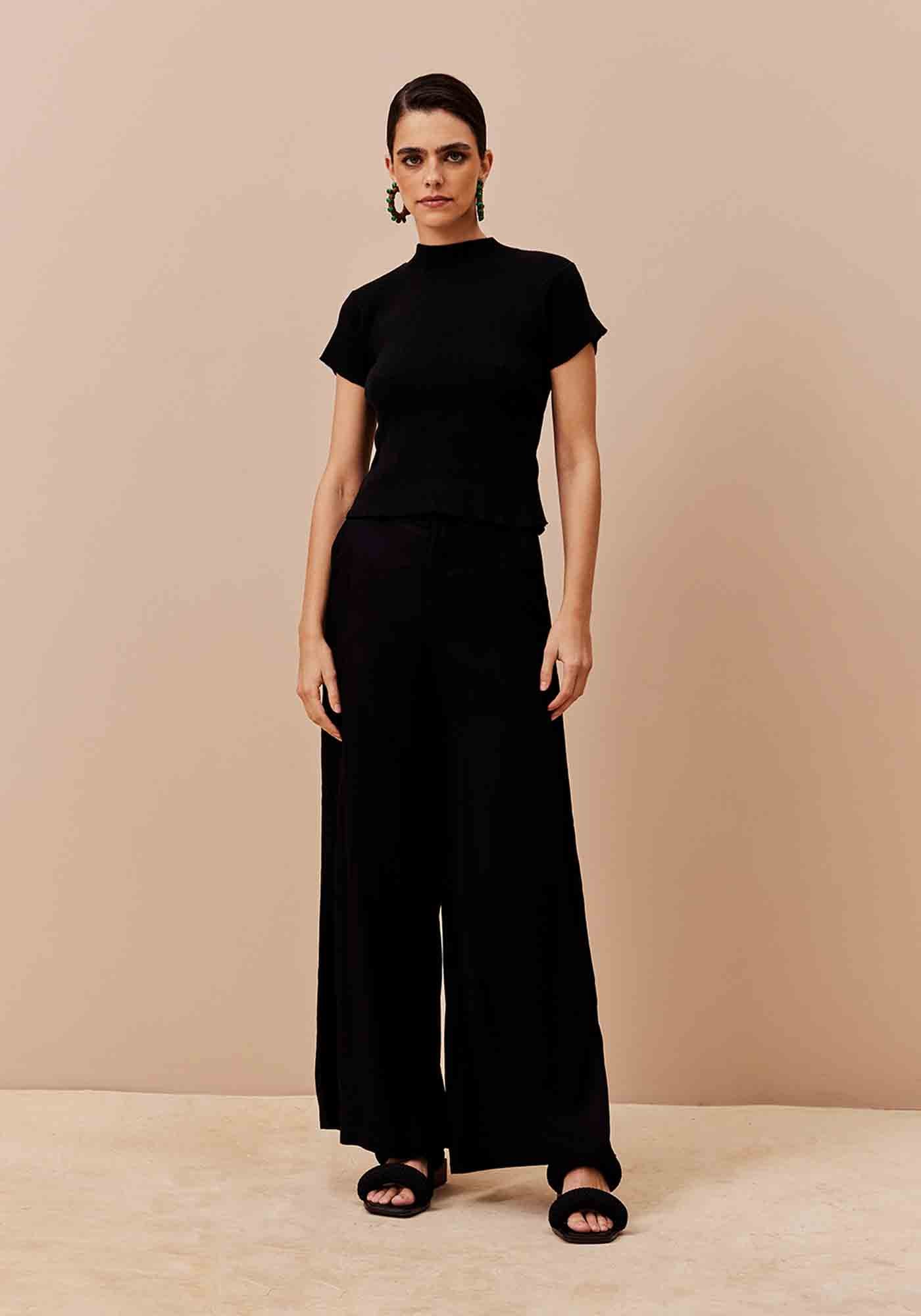 A Calça Pantalona Ampla combina estilo e conforto. Com pala na cintura e passadores, ela traz um ar moderno e também sofisticado ao look. O fechamento em braguilha e os bolsos frontais completam o design funcional e elegante. Feita em 100% Viscose, é uma peça versátil para compor produções casuais ou mais elaboradas.