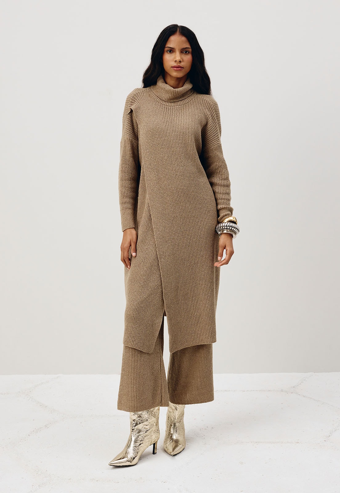 A fluidez do tricot encontra a elegância da modelagem pantalona nesta peça que une conforto e sofisticação em uma só peça. Com caimento leve e toque macio, a calça se destaca pela silhueta ampla que alonga o corpo e confere um ar contemporâneo ao visual.