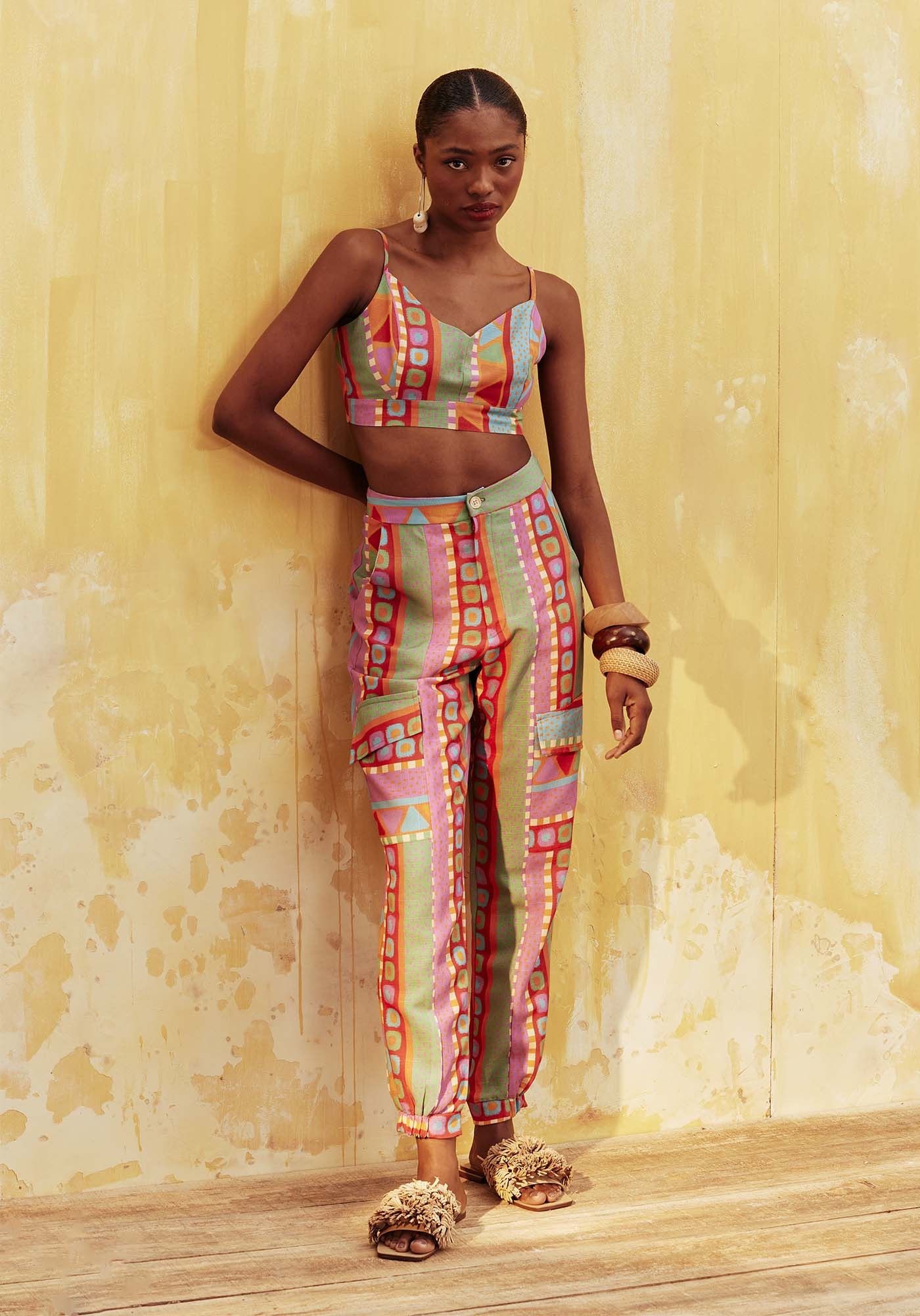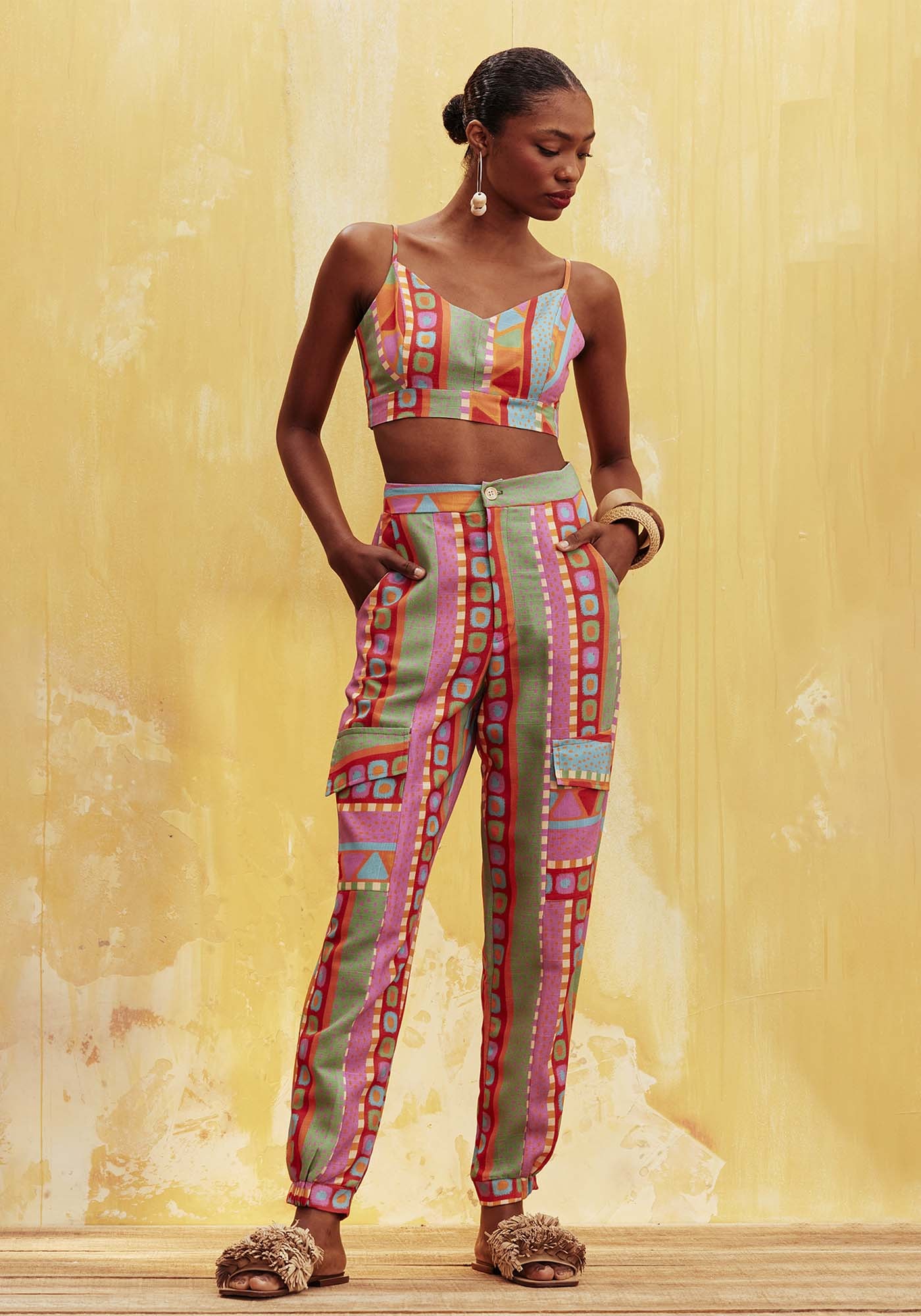 Confeccionada em tecido 61% viscose e 39% algodão, a calçaboxer é um modelo que pode ser usada em diferentes looks. A peça possui cinturaalta e abotoamento frontal, além dos bolsos laterais que proporcionam maiorcomodidade no dia a dia. O detalhe da barra mais justa dá um charme para a peça.