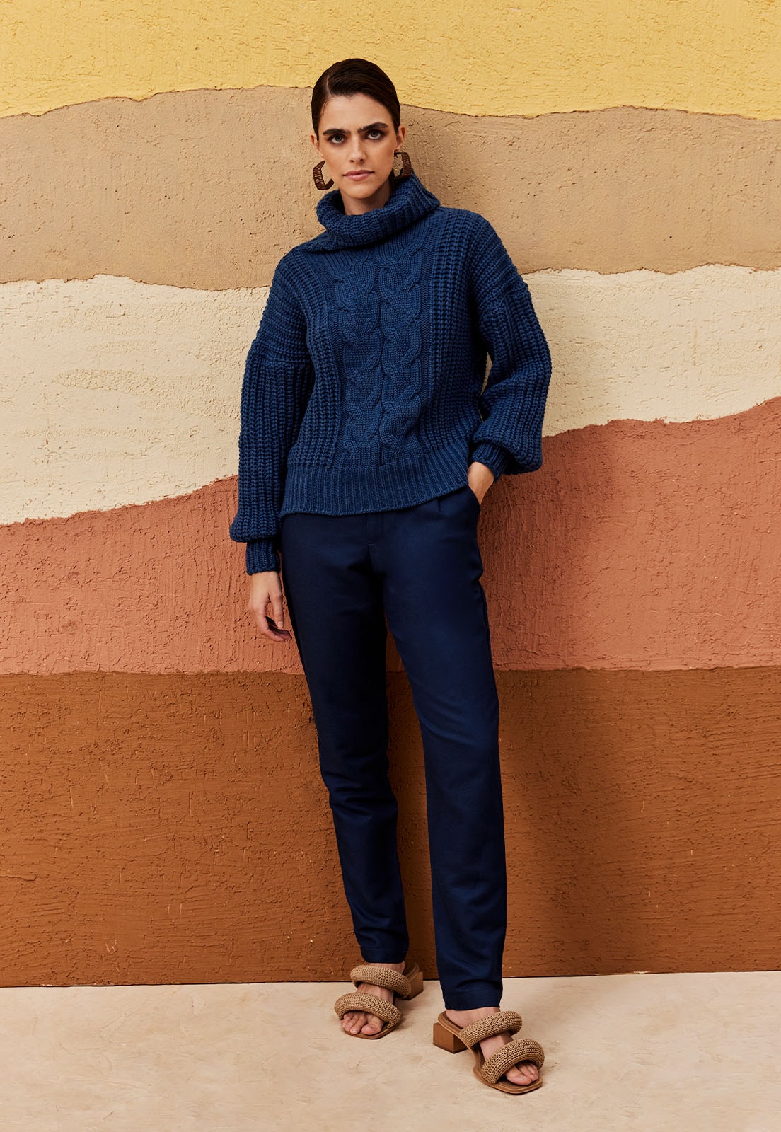 Esta Calça é a peça ideal para quem busca um visual moderno e sofisticado. Apresenta modelagem cenoura que é caracterizada por ser mais afunilada na barra com detalhe da bainha dobrada. Possui bolsos frontais que conferem funcionalidade e pala na cintura com fechamento em braguilha que marca a cintura trazendo um caimento ideal. A composição de seu tecido é de 50% Algodão 29% Viscose 15% Modal 6% Linho.