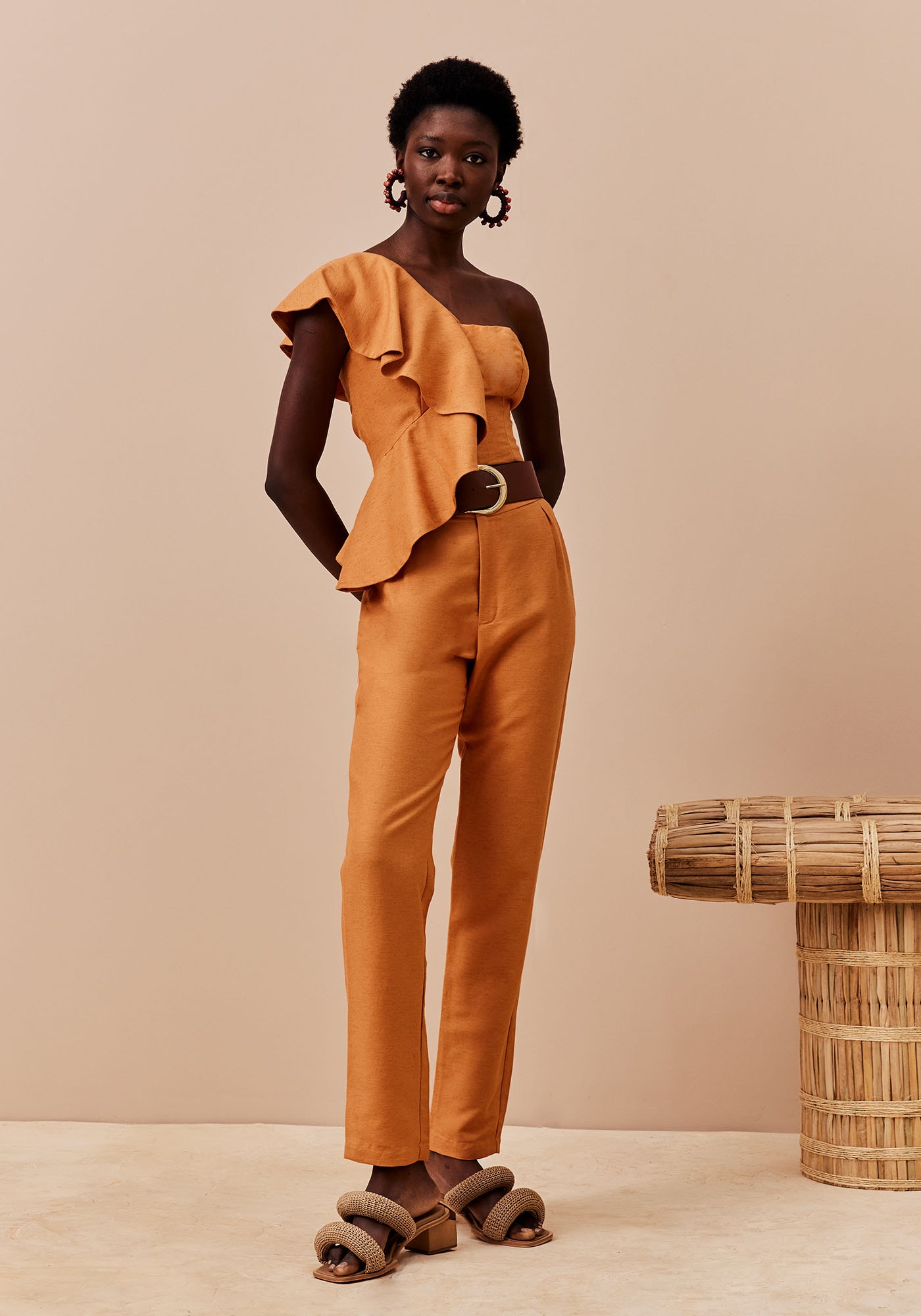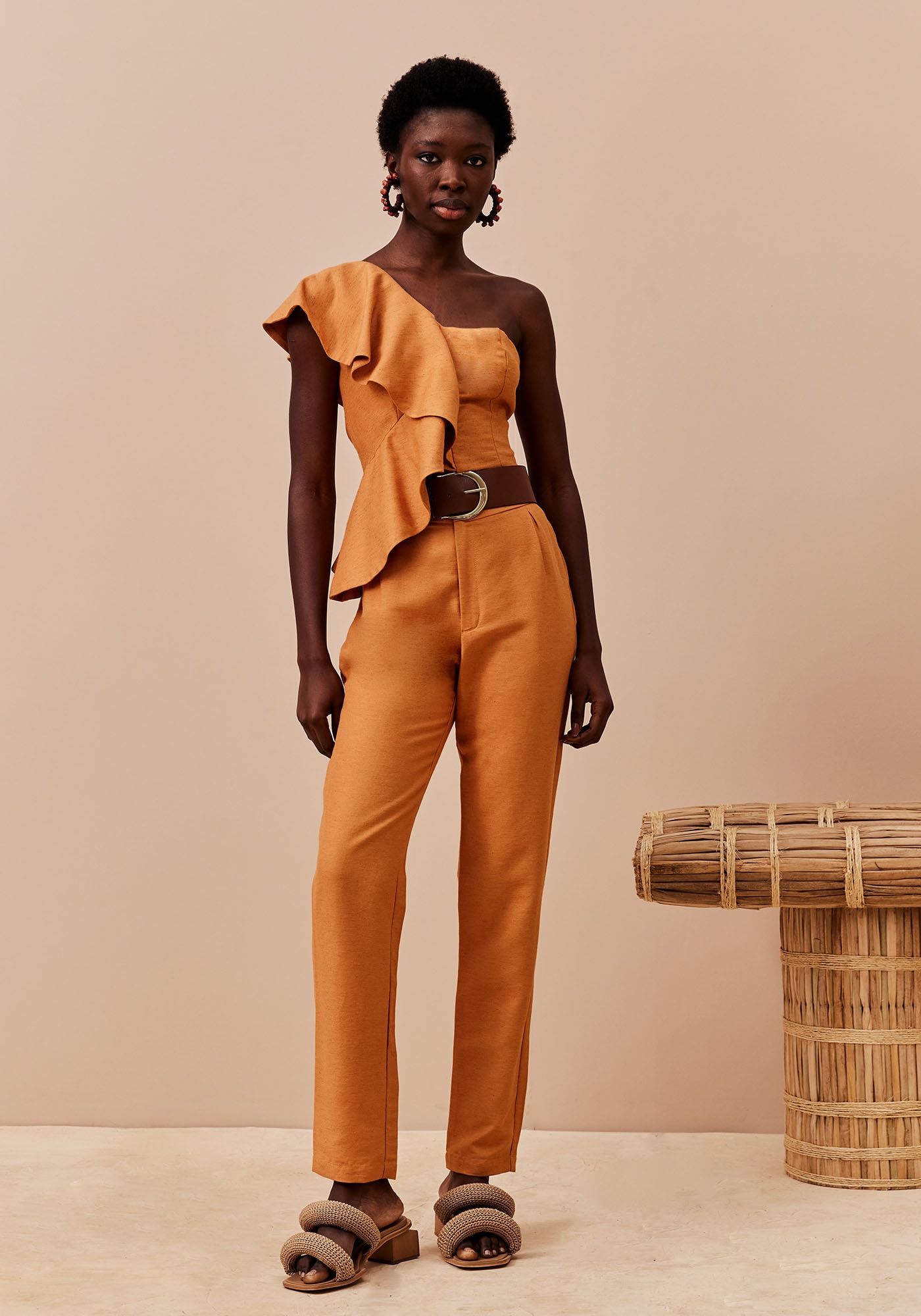 Esta Calça é a peça ideal para quem busca um visual moderno e sofisticado. Apresenta modelagem cenoura que é caracterizada por ser mais afunilada na barra com detalhe da bainha dobrada. Possui bolsos frontais que conferem funcionalidade e pala na cintura com fechamento em braguilha que marca a cintura trazendo um caimento ideal. A composição de seu tecido é de 50% Algodão 29% Viscose 15% Modal 6% Linho.