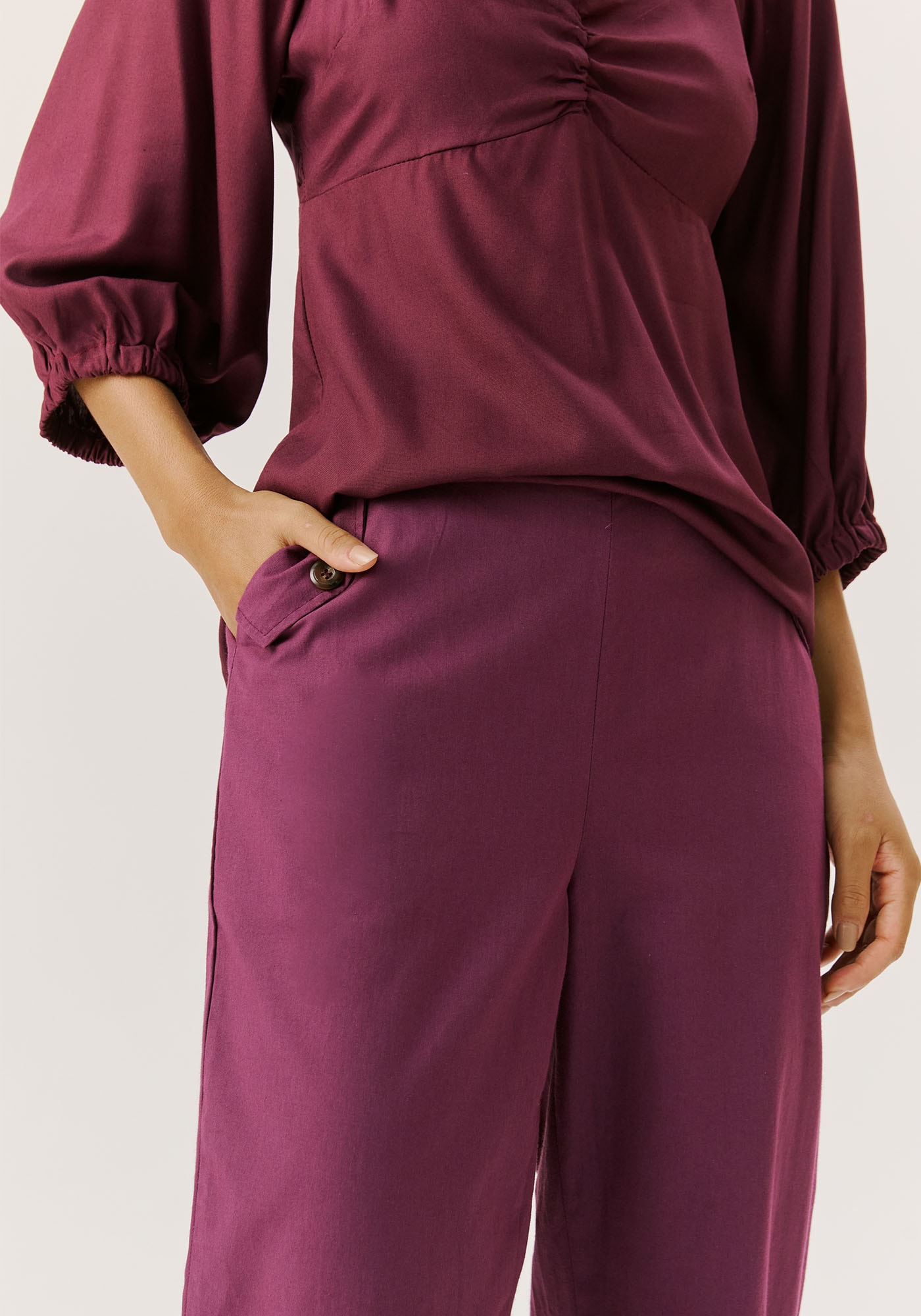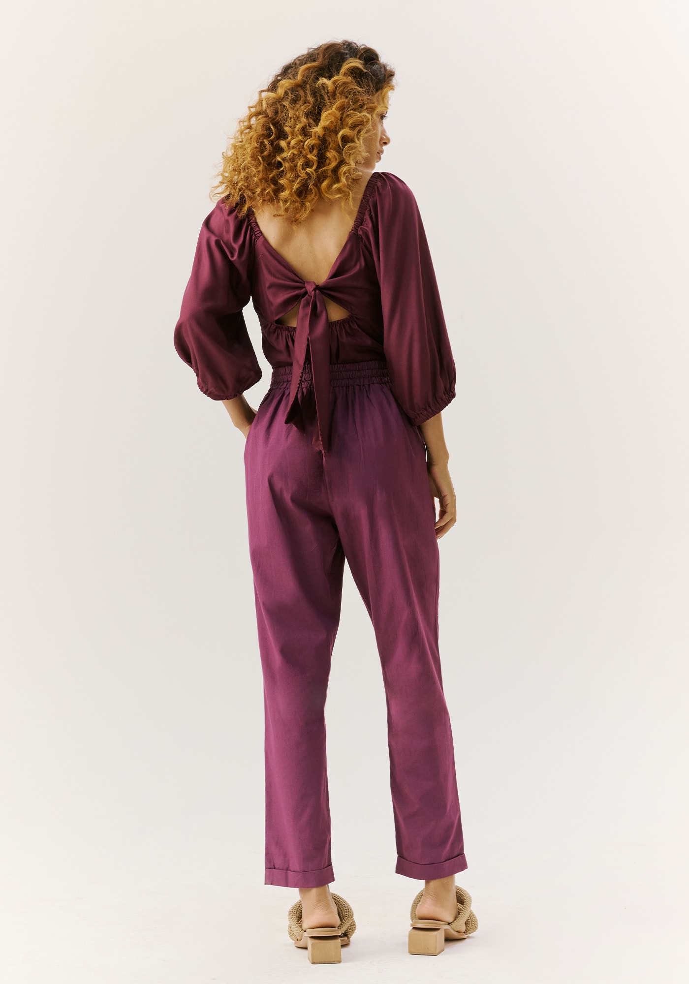 Confeccionada em tecido 100%algodão, a calça com modelagem cenoura é elegante e versátil. O modelo cinturaalta possui pala e bolsos laterais com botão. A barra dobrada dá um charme amais peça. O elástico nas costas favorece e facilita a vestibilidade.
