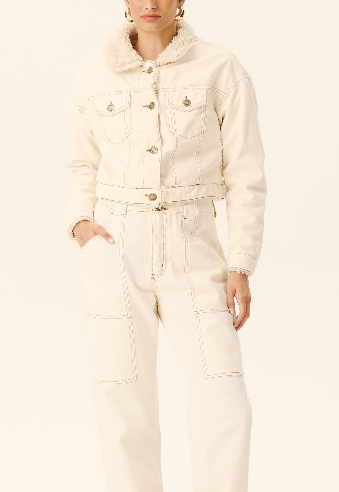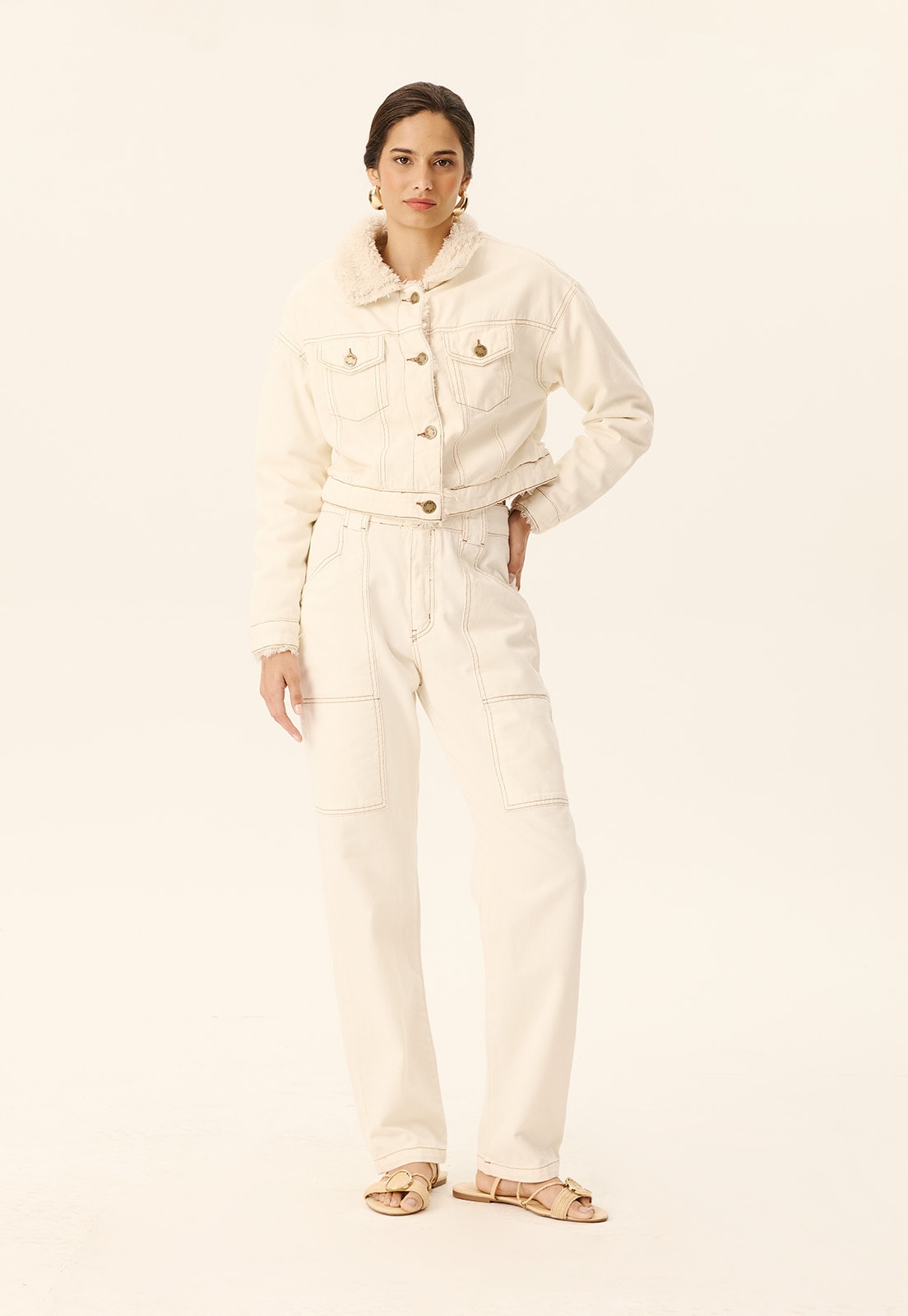 A Calça Cenoura com Bolsos Frente CaCay é a escolha perfeita para quem busca elegância casual com toque funcional. Confeccionada em sarja 100% algodão, oferece caimento estruturado e confortável, valorizando a silhueta sem perder a liberdade de movimento. Os bolsos frontais adicionam praticidade ao design, enquanto o corte cenoura garante um visual moderno e atemporal, ideal para diferentes ocasiões do trabalho ao passeio.