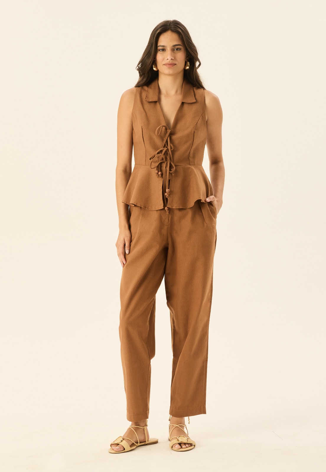 Versátil e atemporal, essa calça combina facilmente com camisas de linho, blusas estruturadas ou até mesmo t-shirts básicas. Para um visual completo, aposte em sandálias de tiras, mules ou tênis minimalistas. A modelo veste tamanho P e tem 1,77m de altura.