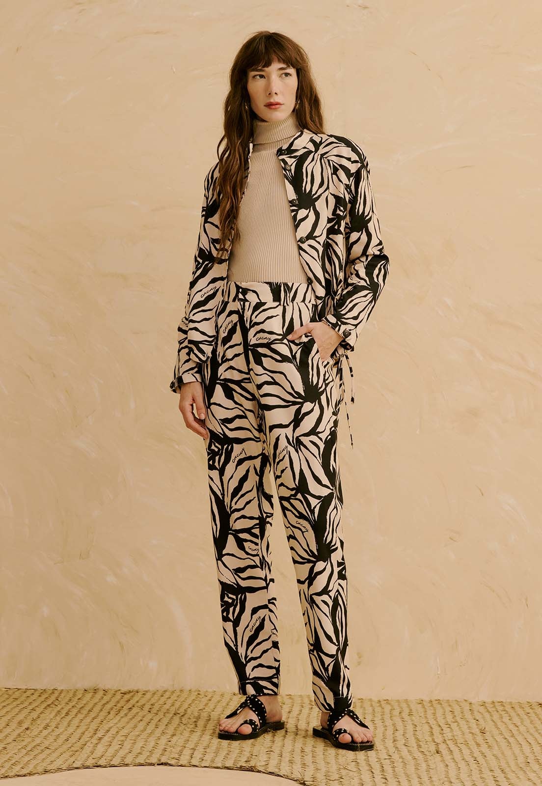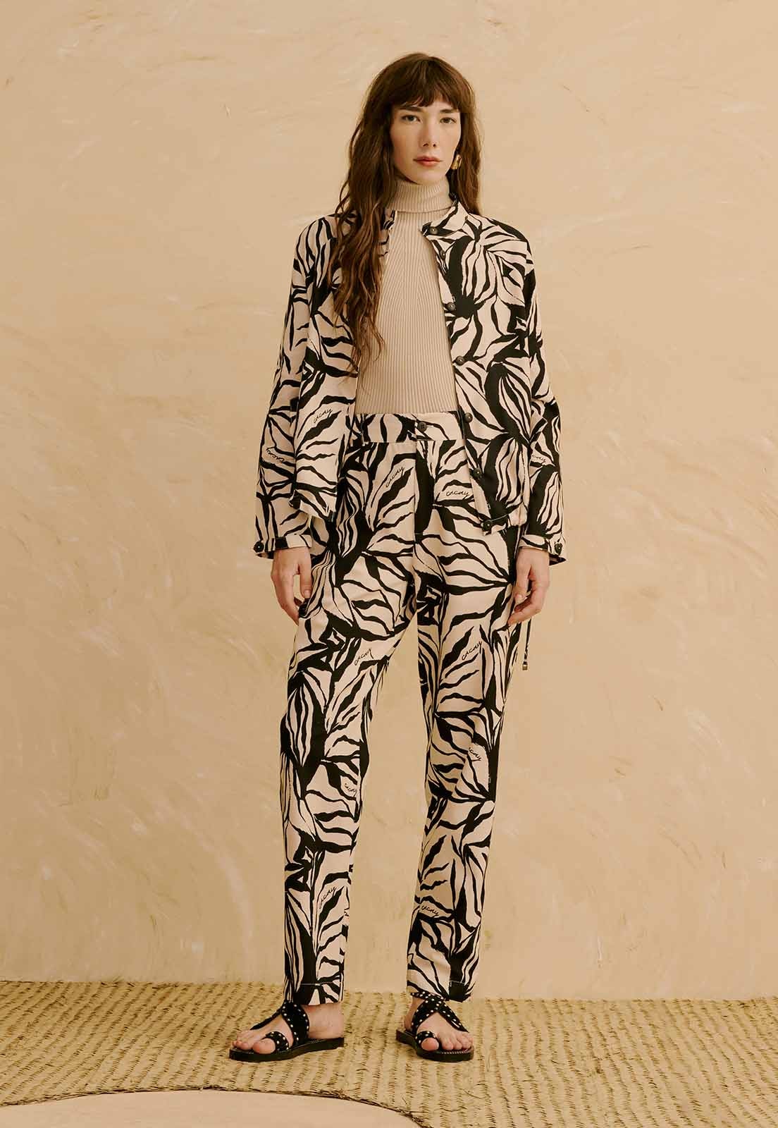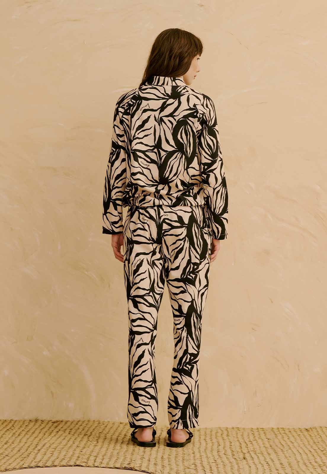 Confeccionada em 70% algodão e 30% viscose, a peça apresenta toque leve, baixa elasticidade e sensação de frescor ao longo do dia. A estampa com elementos orgânicos adiciona dinamismo ao visual, tornando a calça versátil para composições casuais, trabalho descontraído ou encontros diurnos. Combine com tops básicos, camisas estruturadas ou sandálias minimalistas para criar looks práticos com personalidade.