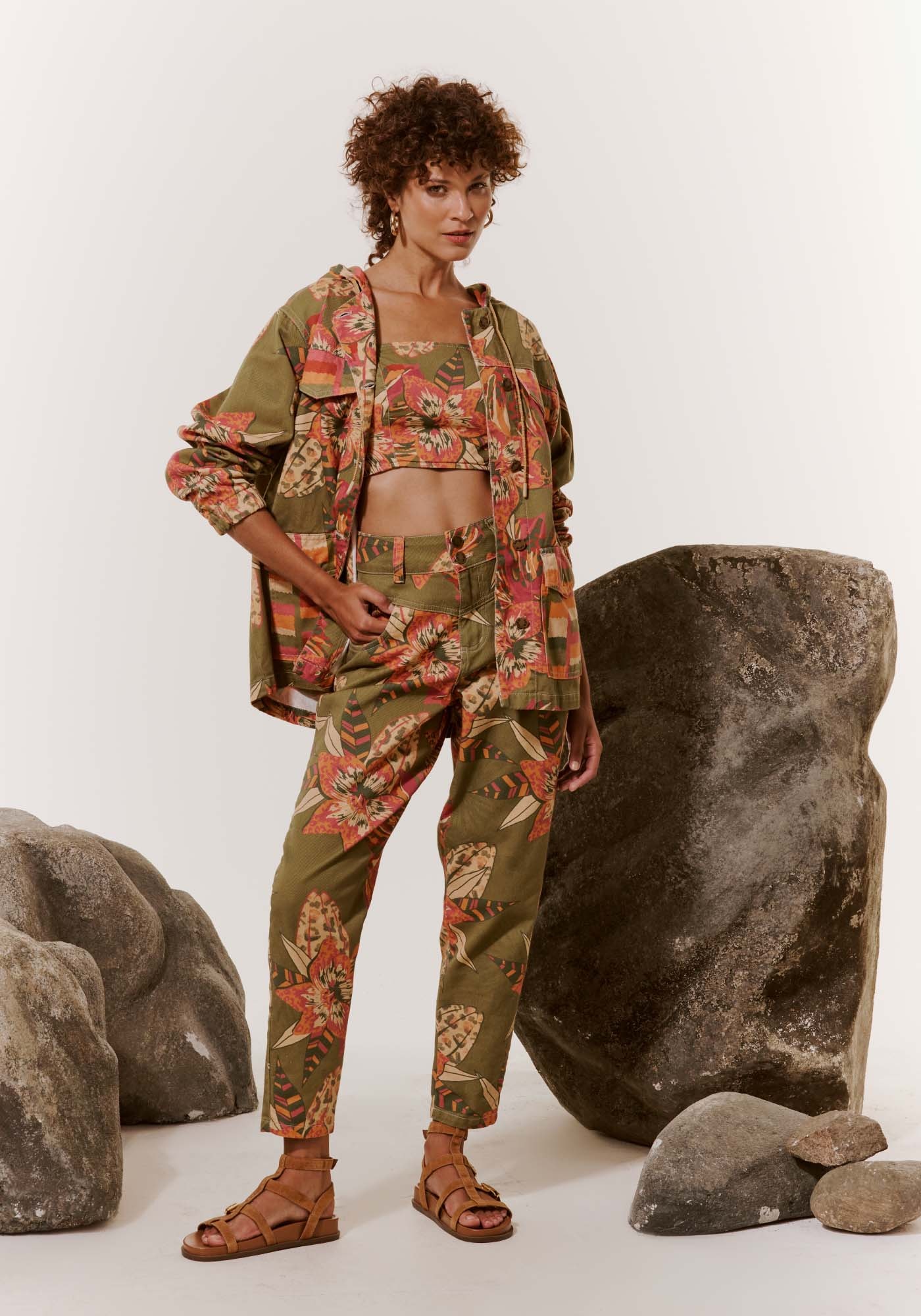 Básica e indispensável, a calça é confeccionada em tecido100% algodão. Possui cintura alta e bolsos que dão mais praticidade. Modelo estampado, é uma ótima opção para combinar comblusas e sobreposições lisas ou peças da mesma estampa.
