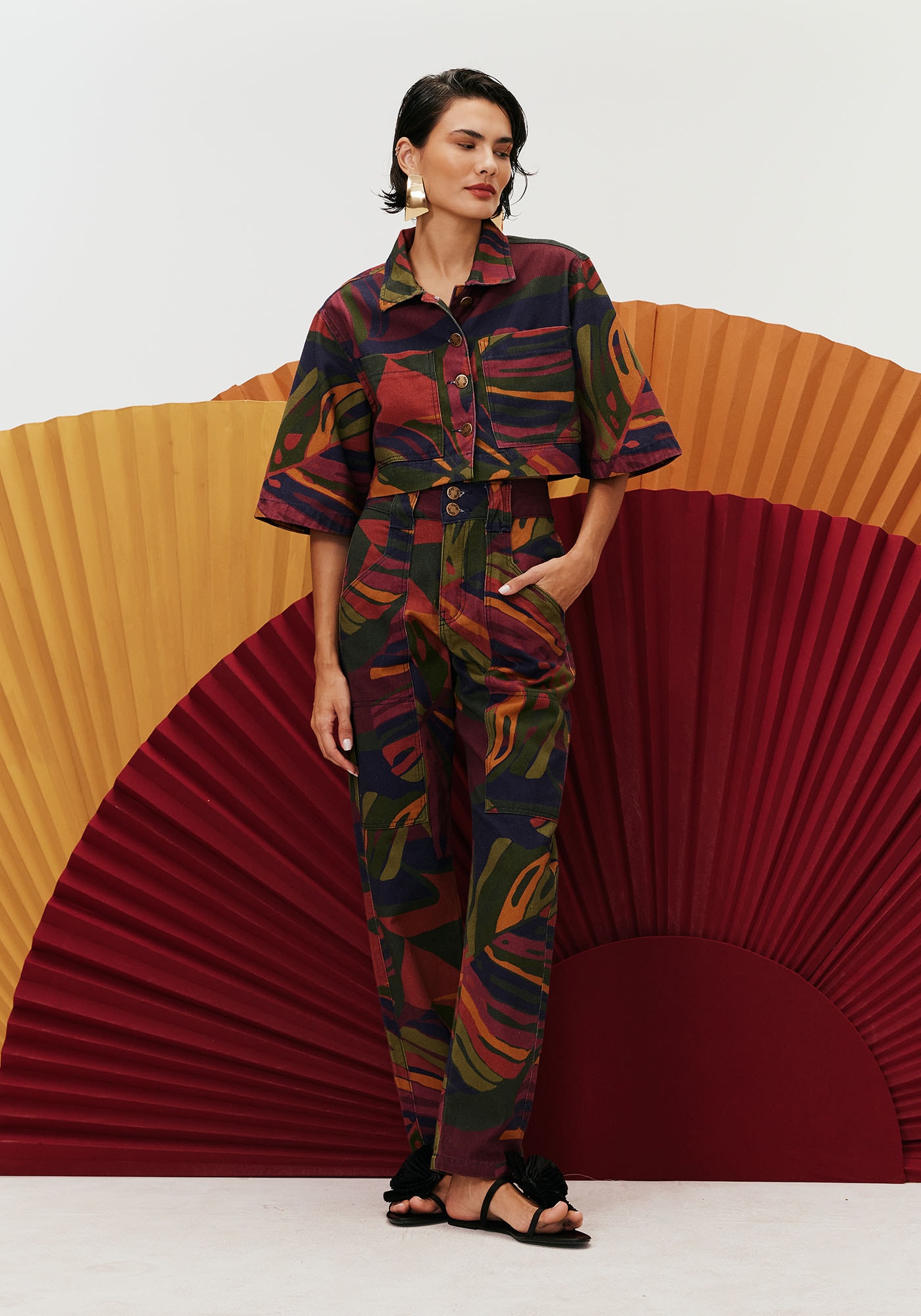 Encante-se com esta deslumbrantecalça na nossa estampa exclusiva Merengue. Na modelagem cenoura, a peça possuizíper com braguilha e abotoamento duplo. Apresenta dois bolsos frontais amplosque além de tornarem a peça mais estilosa e moderna conferem mais praticidade. Éconfeccionada em sarja de composição 100% algodão.