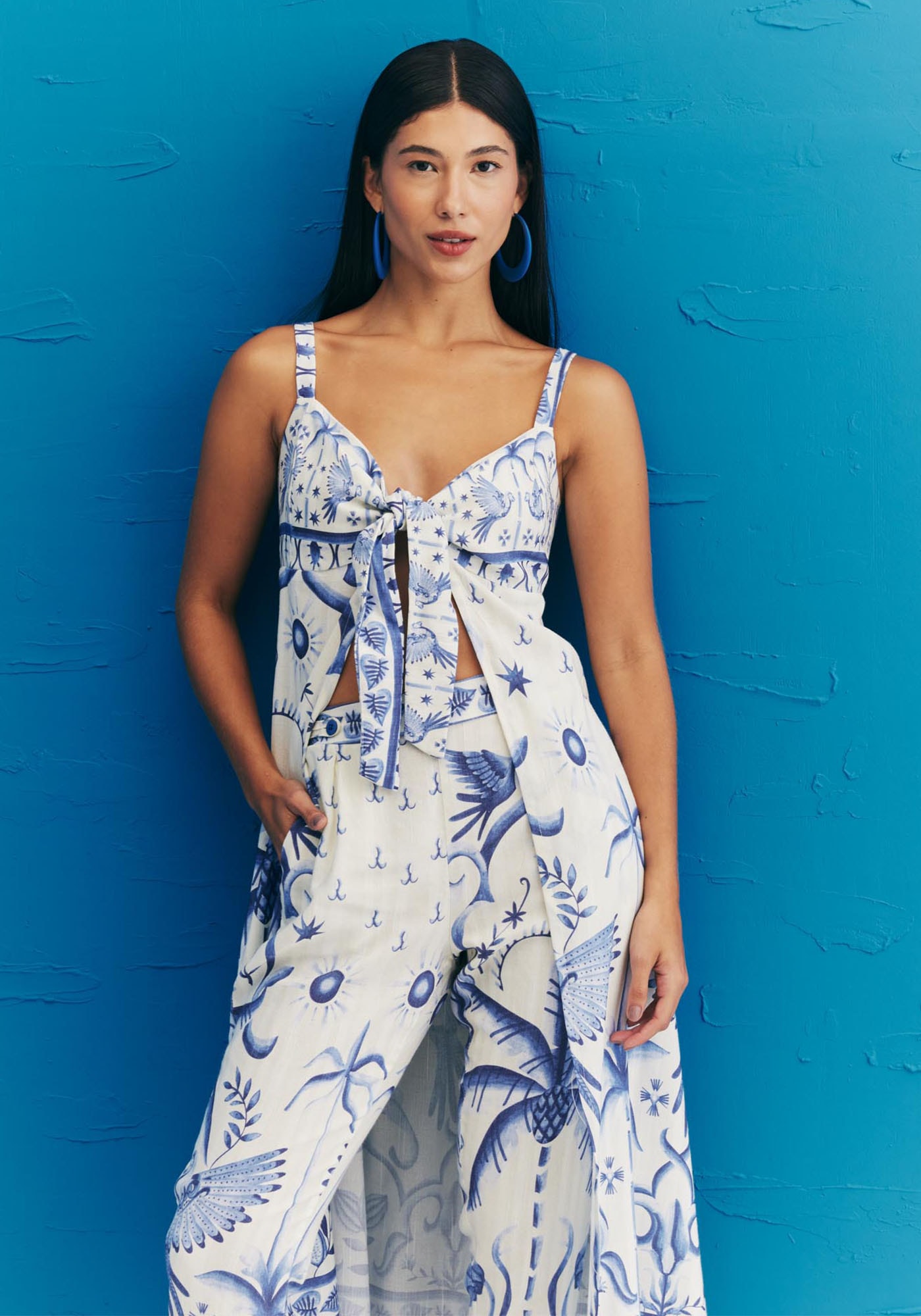 A Calça Cenoura Social Estampada é aescolha ideal para quem busca uma peça sofisticada, confortável e versátil. Suamodelagem cenoura oferece um caimento ideal, ajustado ao corpo de maneiraelegante e moderna. Seus botões na parte frontal do cós adicional um detalheúnico e refinado, enquanto o lastex no cós traseiro proporciona conforto e umajuste personalizado ao corpo. Possui pregas frontais. Em nossa estampaexclusiva Noronha em tons de azul e branco, é perfeita para um visual elegantede verão. Confeccionada em tecido 61% viscose 39% algodão.